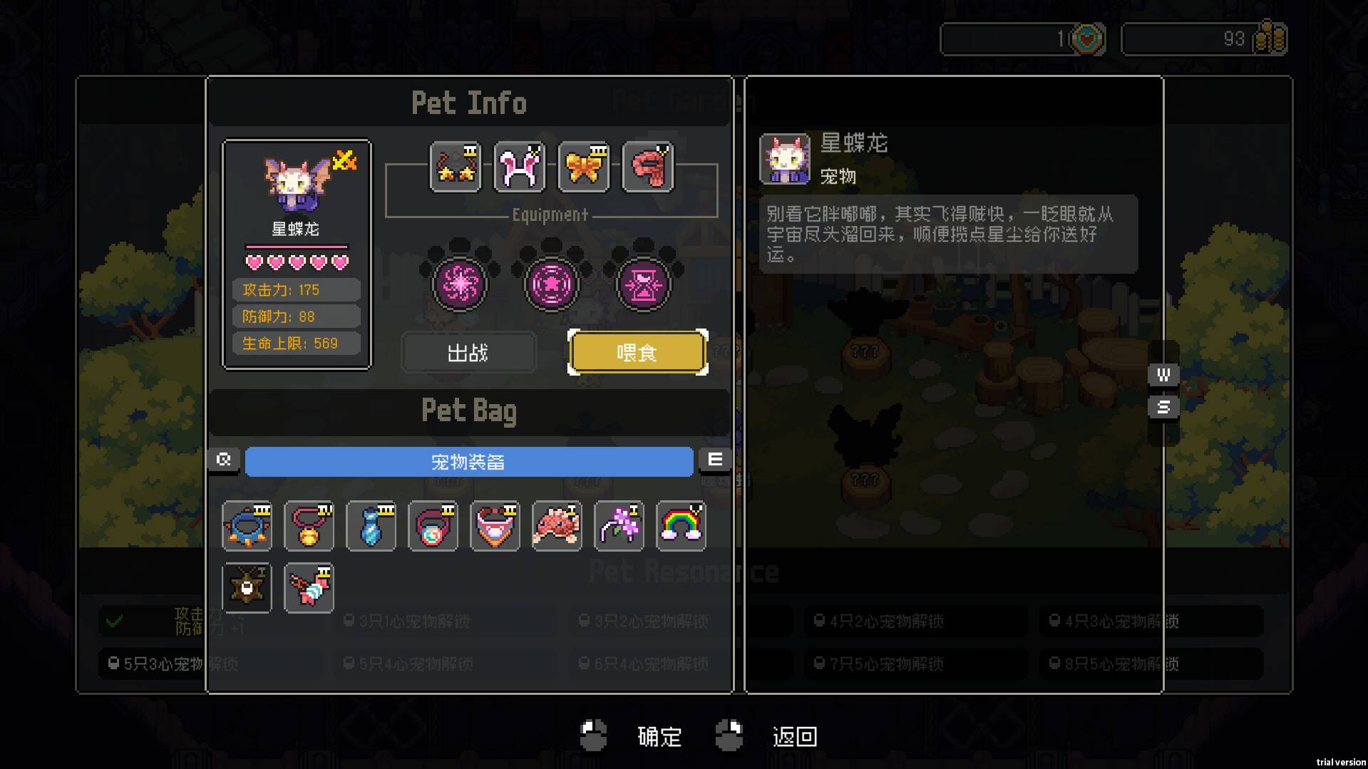 同样的问题也出现在宠物培养上——用于喂养宠物的料理素材给的很少,洋葱、鸡肉这些食材需要反复开图刷取,后面我懒得刷了不得不重金买了几百个汉堡喂宠物。这种设计很难与其单人向的核心定位相匹配——玩家被迫把大量时间投入到锄地挖材料上,而非刷更好词条的装备和随机附魔的武器之类的东西。我建议让Boss不要只掉落装备和普通素材,加点这些生活材料的掉落,包括木头矿石和棉花这些。