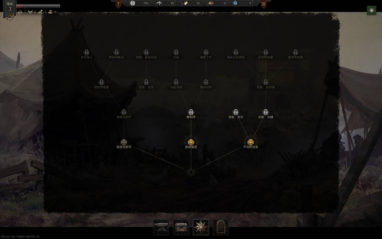 而锻造之外,游戏则用常见的“属性+叙述”的方式构造了整个世界和故事。玩家在每天白天根据行动力分配事件,获取物资奖励;而晚上则在地图上完成事件探险和物资收集,解锁更多的图纸和可行道具,丰富玩家的武器锻造。