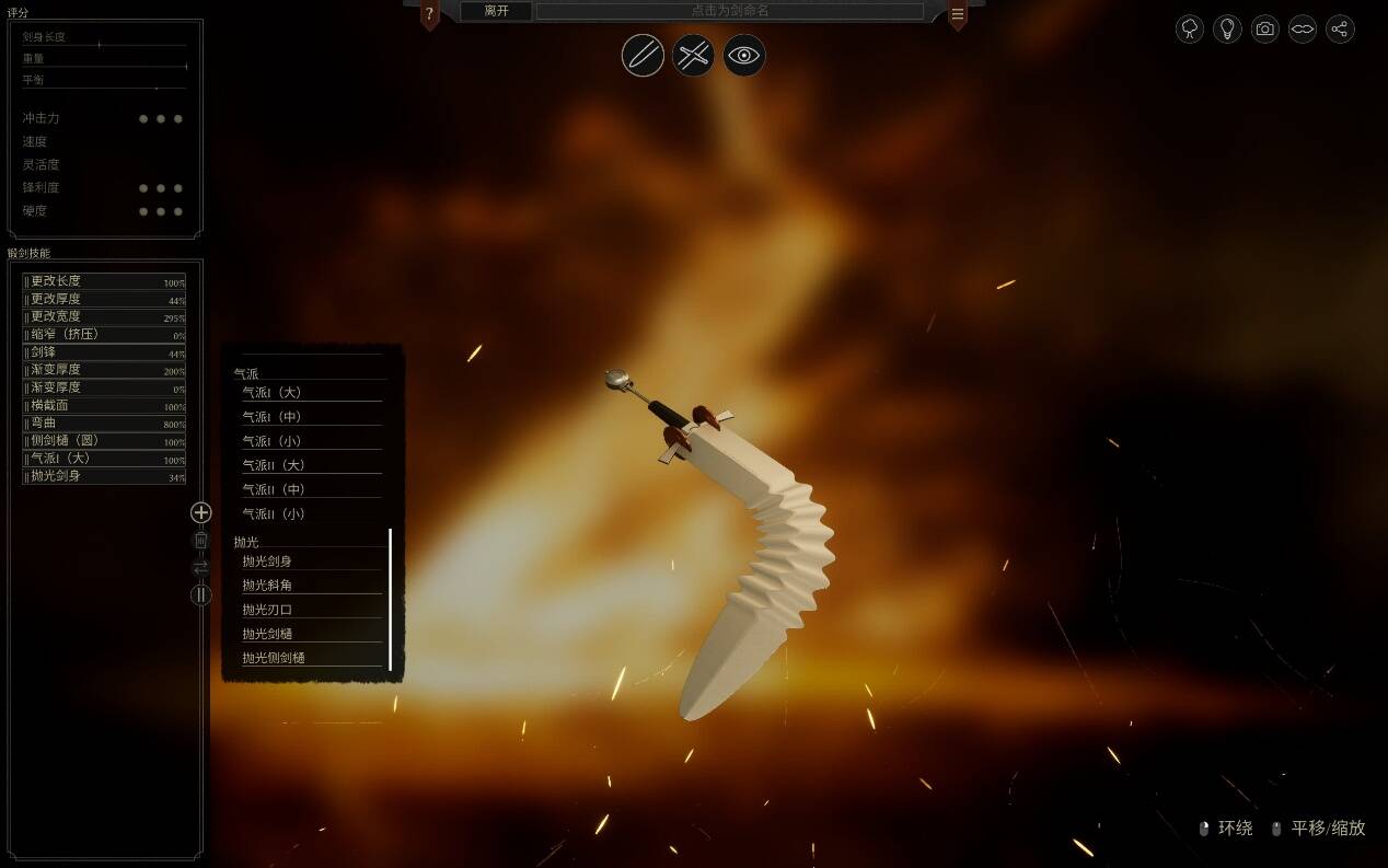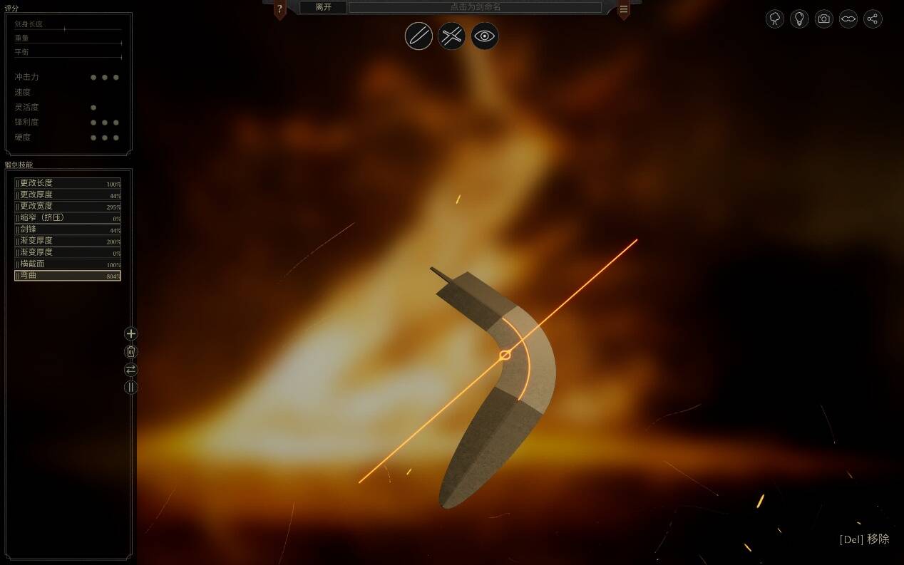 本作在视觉上直给的还原了“锻打”的过程,要求玩家从一块铁锭,锻打出具有特定属性的长剑。游戏将铸造进行了模块化和数据化,玩家通过长度、宽度、刃度、形状等多个角度,通过“锻打”和数据化反馈进行设计。