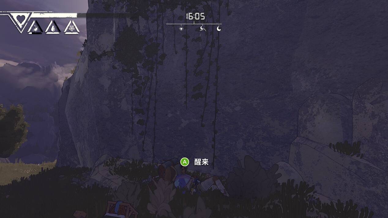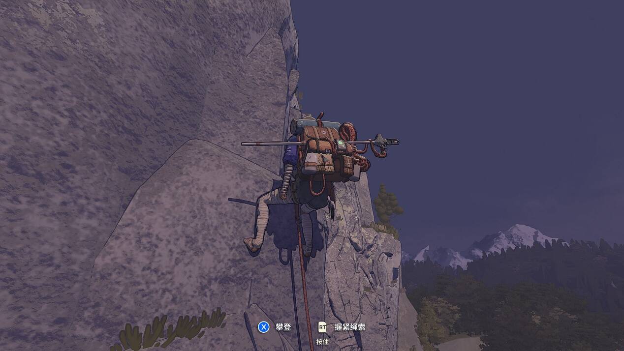 游戏只允许玩家在特定的地点扎营休息,不过玩家可以通过消耗时间小憩来恢复状态。需要注意的是,游戏中的时间不仅作为资源消耗的指标,还会引发亮度、气候的变化。而不同条件下的攀登,也产生不同的影响,比如雨天玩家的握力上线会下降。