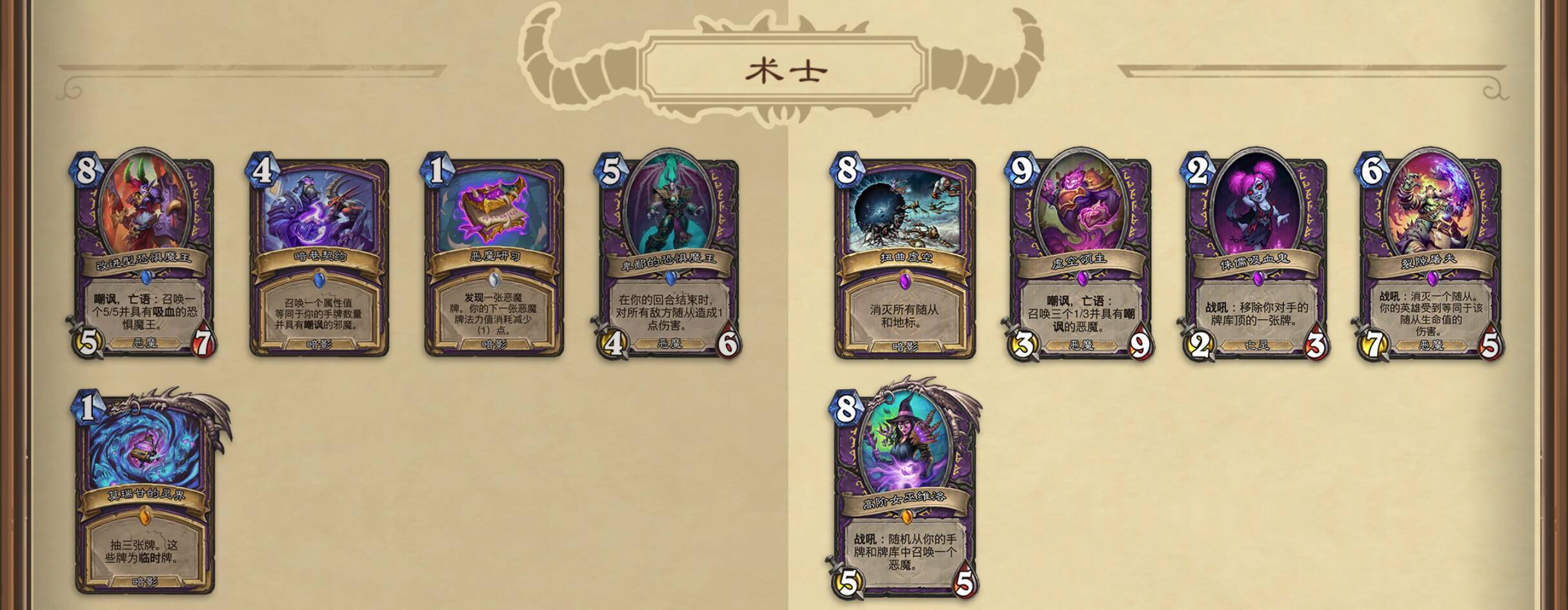2026甲虫年核心系列的术士职业牌更替整理如下。狂野各种术士要花尘合成灵界了。