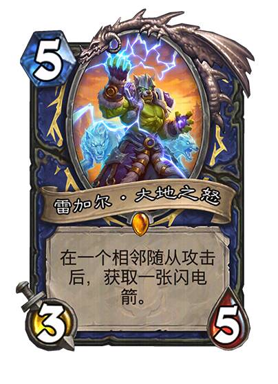 在本随从或其相邻随从攻击后,获取一张闪电箭。【以此为准,简中翻错了】