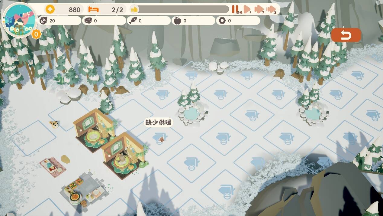 游戏中的三个主要模式也围绕着建设展开。除了地形开阔的森林地形之外,游戏还提供了地形逼仄的小岛地形与需要供暖才能运作的寒冷地形供玩家体验。三个模式的策略差异极其明显,不过比较遗憾的是,每个模式的地图暂时没有提供变化。