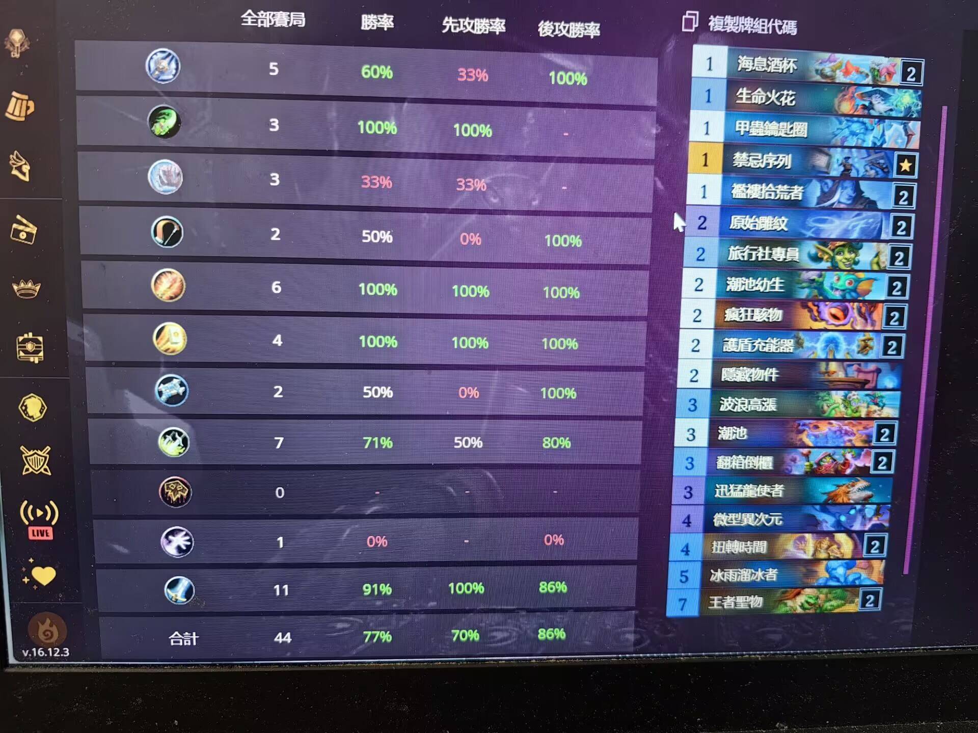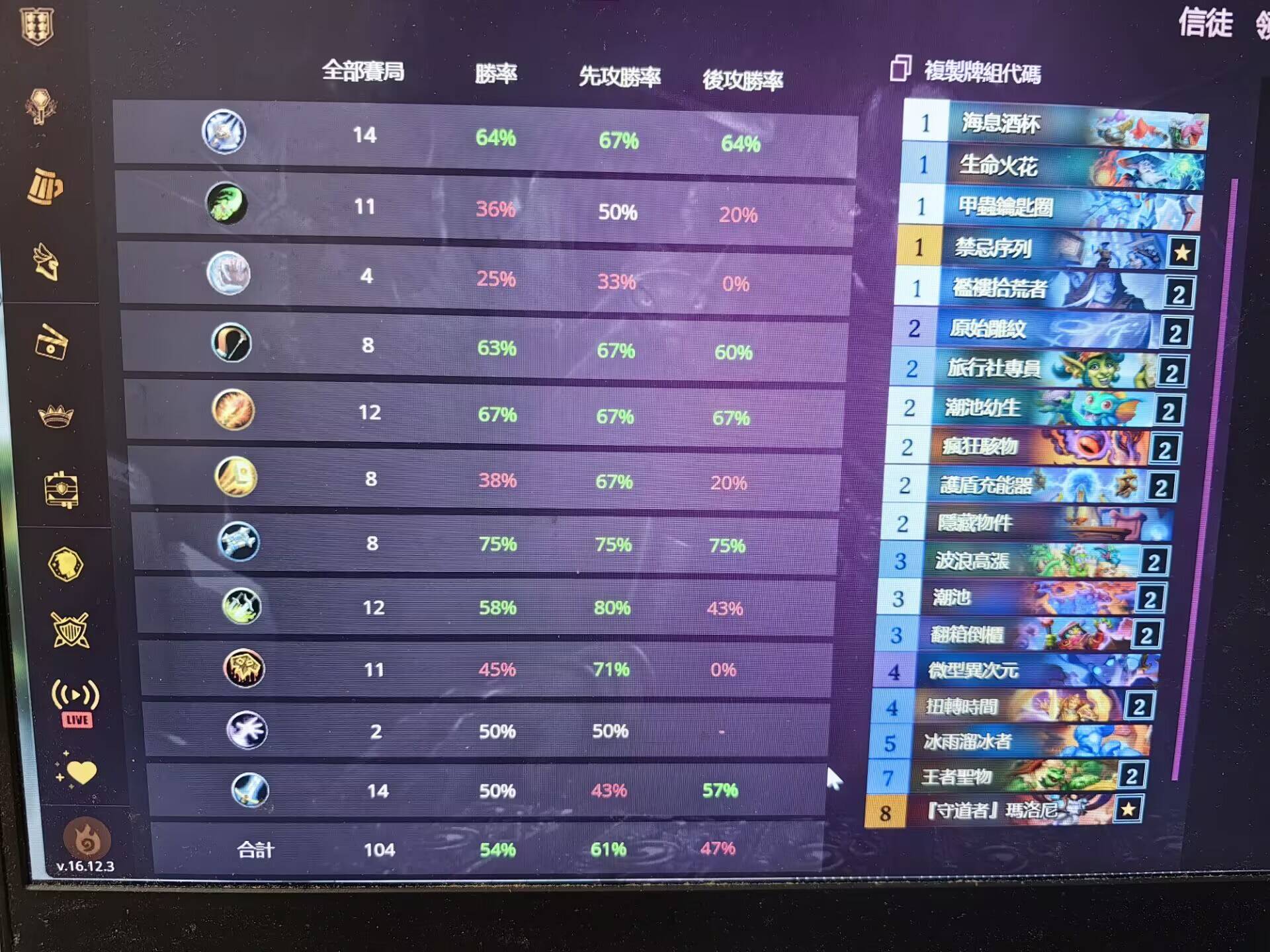 - 展示卡组及胜率