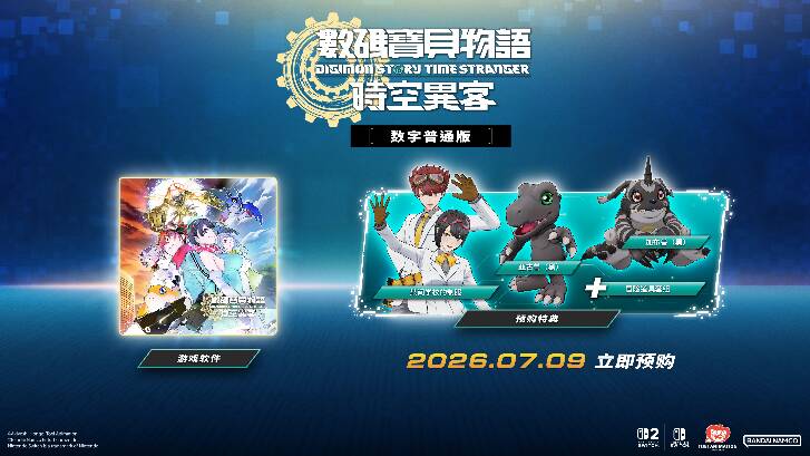 【2026年02月06日】万代南梦宫娱乐宣布,系列作品史上PlayStation®5/Xbox Series X|S/STEAM®版的全球累积销量最快突破100万套的培育型RPG《数码宝贝物语 时空异客》,即将在2026年7月9日推出Nintendo Switch™ 2/Nintendo Switch™版。同步公开最新宣传视频。