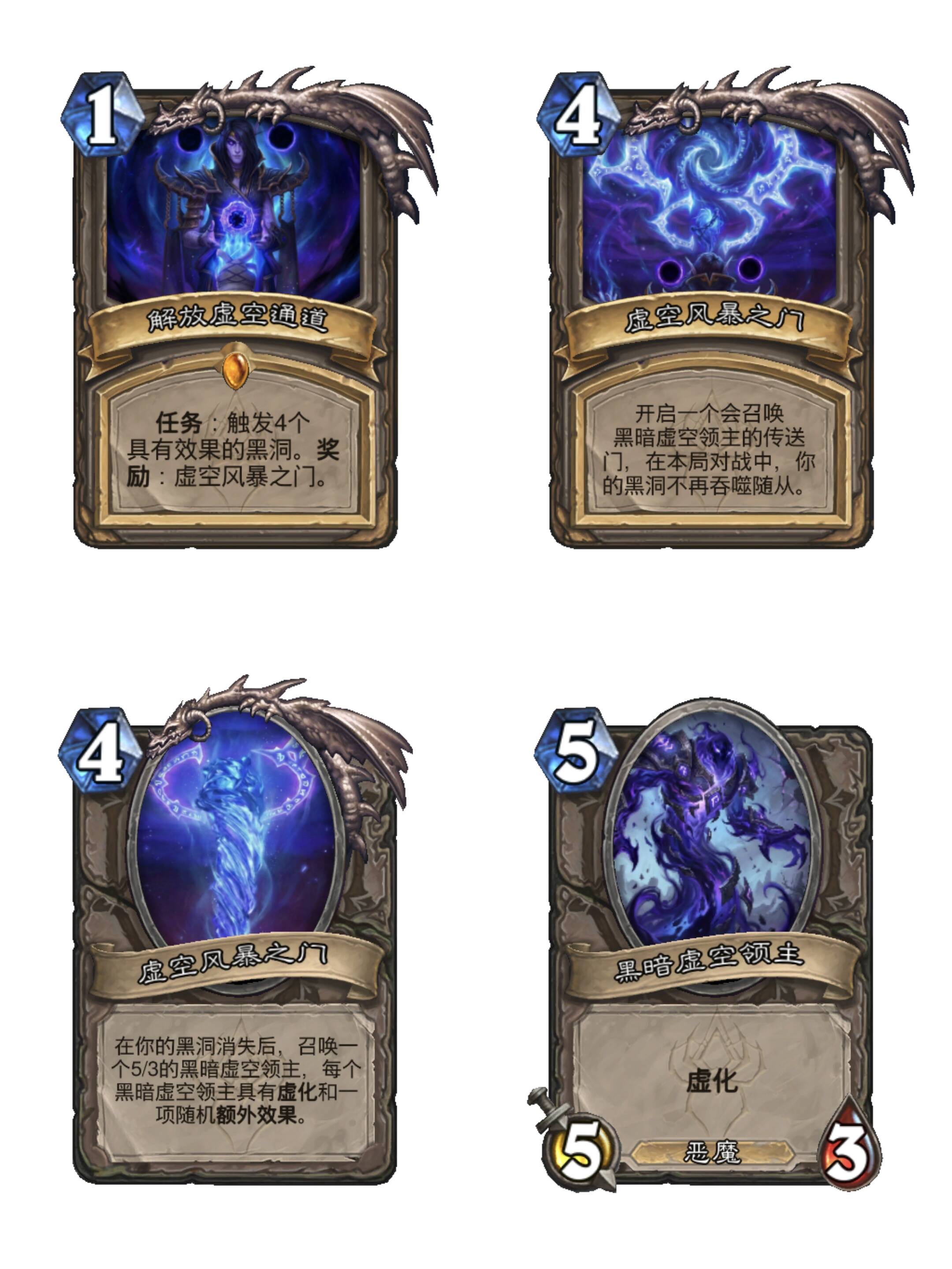 任务解放虚空通道较为适合拥有7/7随从牌的四个职业,部分职业需要黑洞可以吞噬随从。