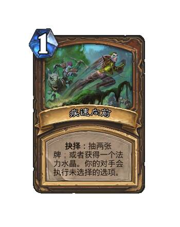 - 新:[1费] 抉择:抽两张牌;或者获得一个法力水晶。你的对手会执行未选择的选项。