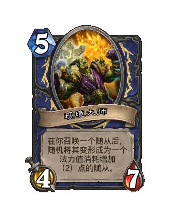 - 旧:[1费2/2] 战吼:将两张无限鱼人洗入你的牌库。你此后的无限鱼人获得+1/+2。