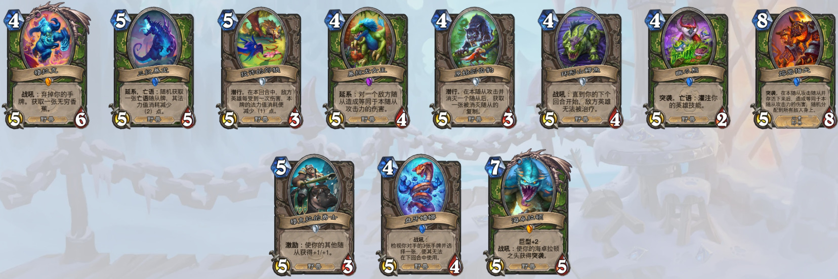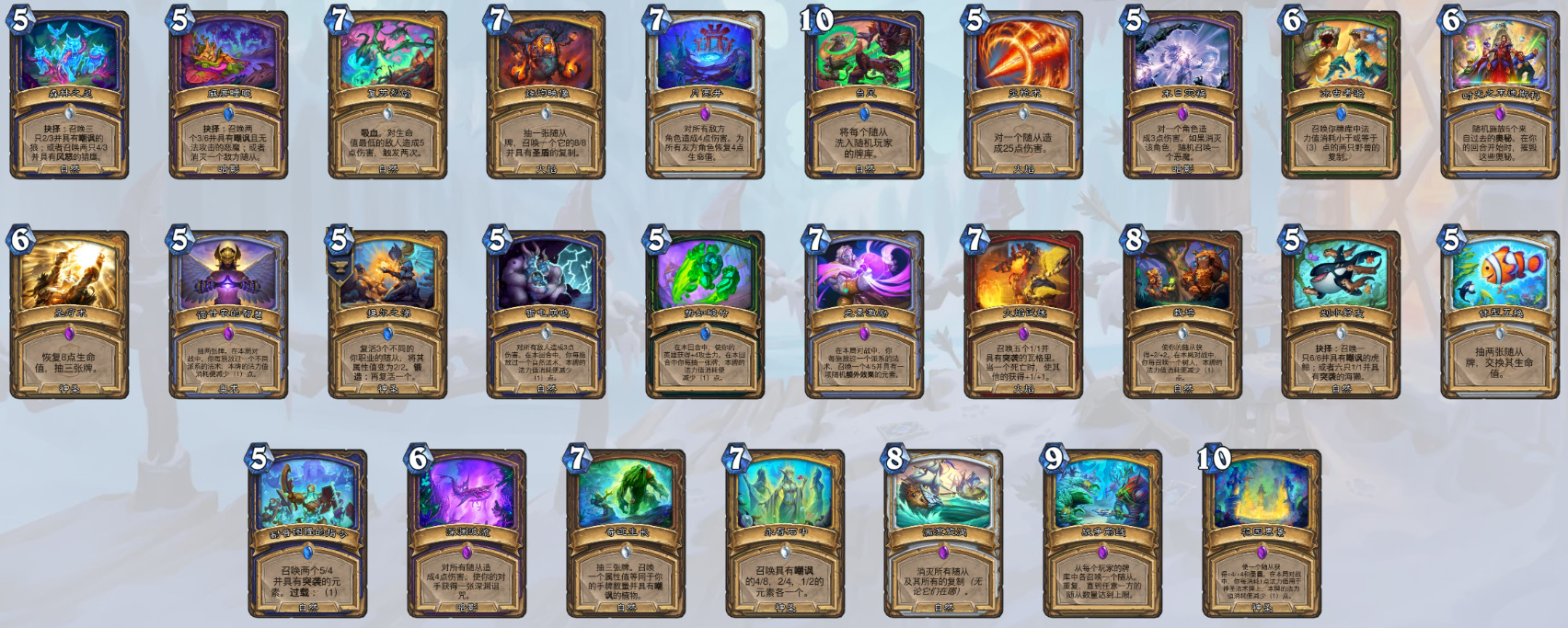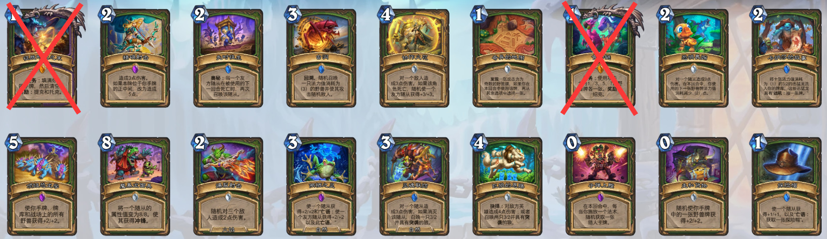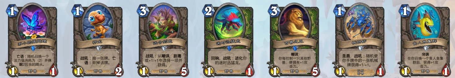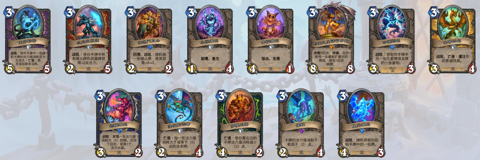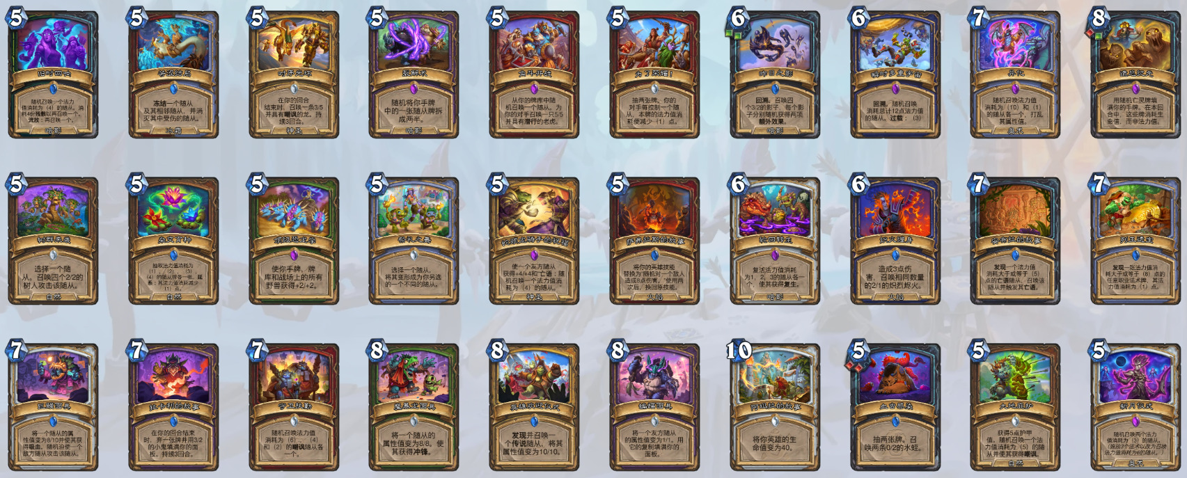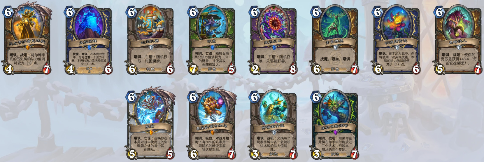 注:①不列举过于庞大的衍生卡池,例如“来自过去的随从”“1费法术”。