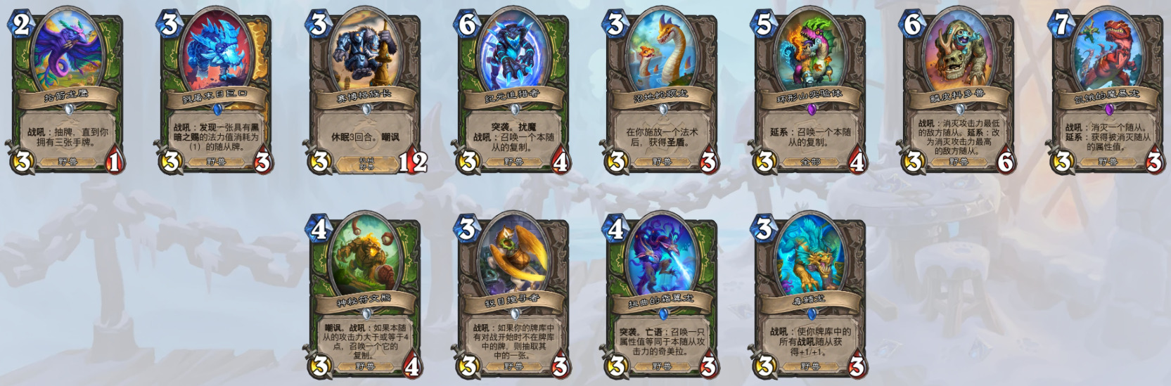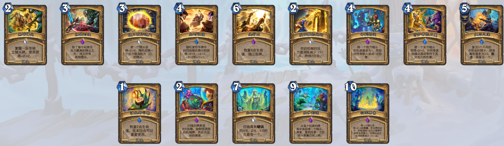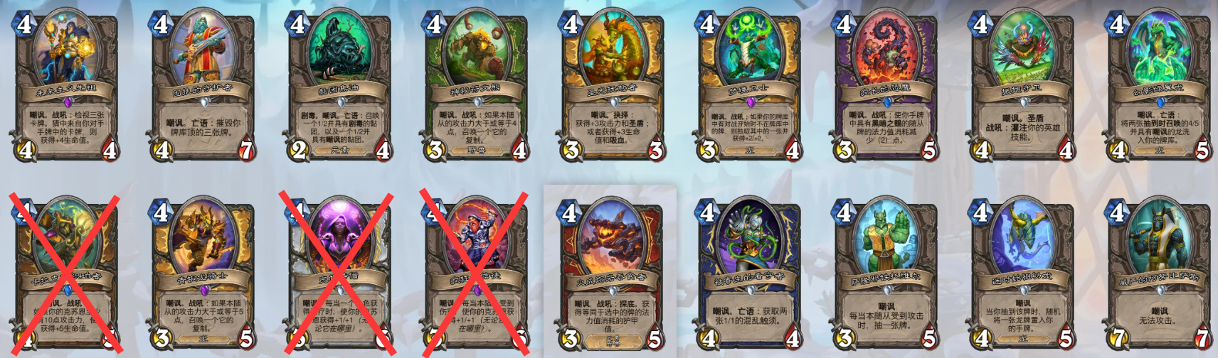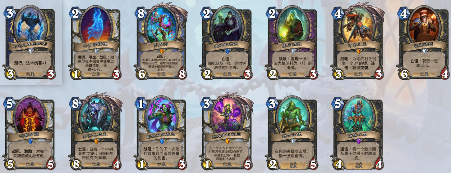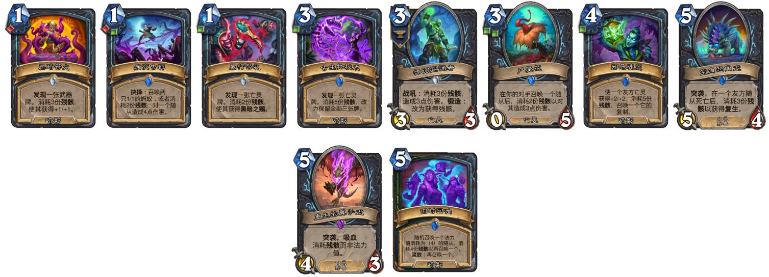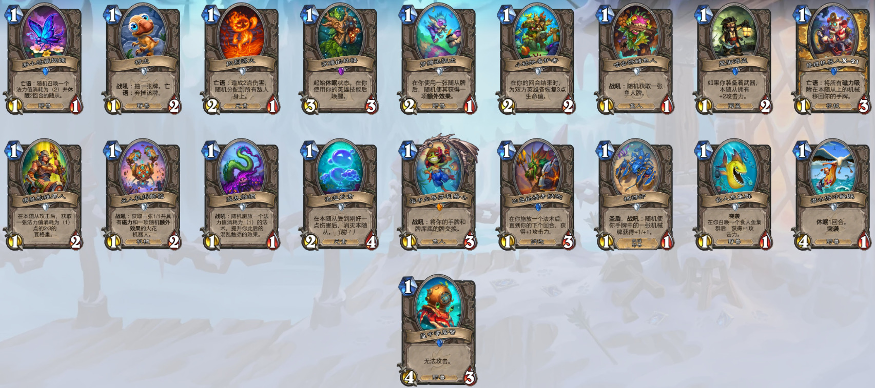 注:①不列举过于庞大的衍生卡池,例如“来自过去的随从”“1费法术”。