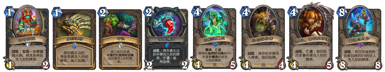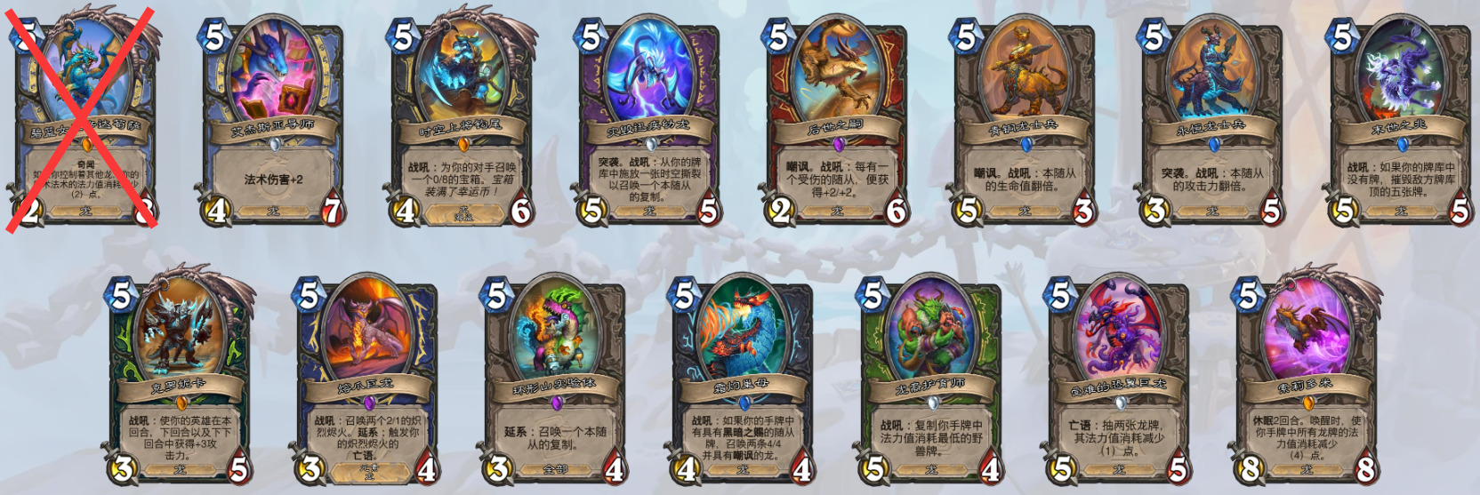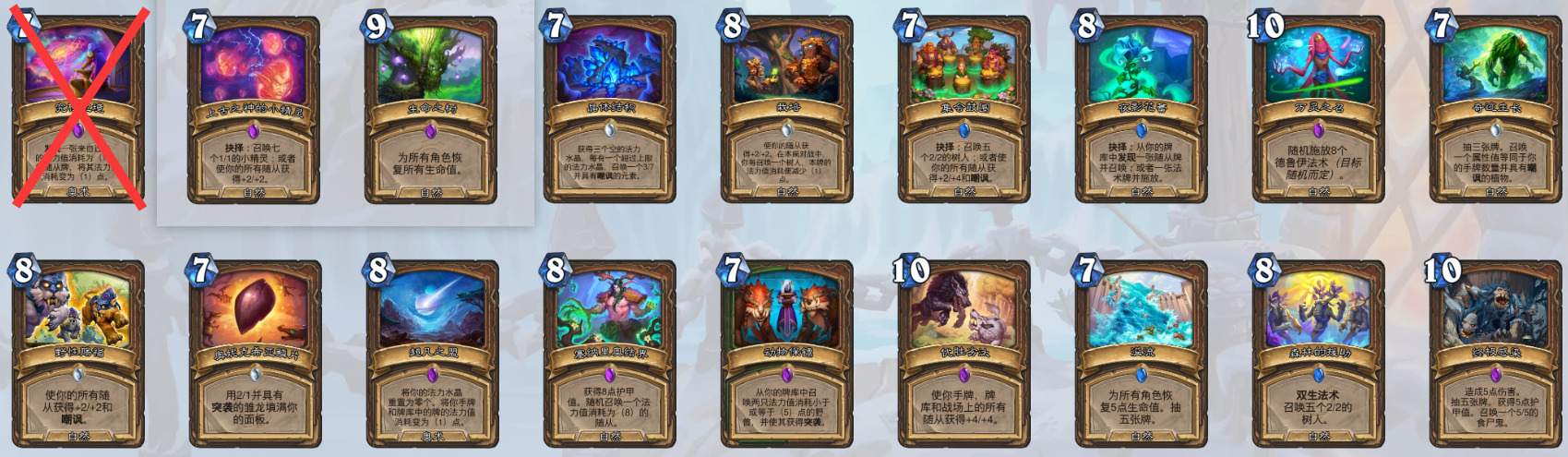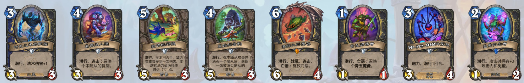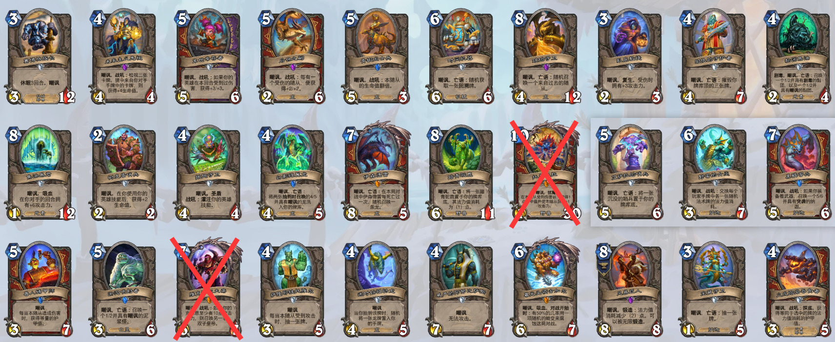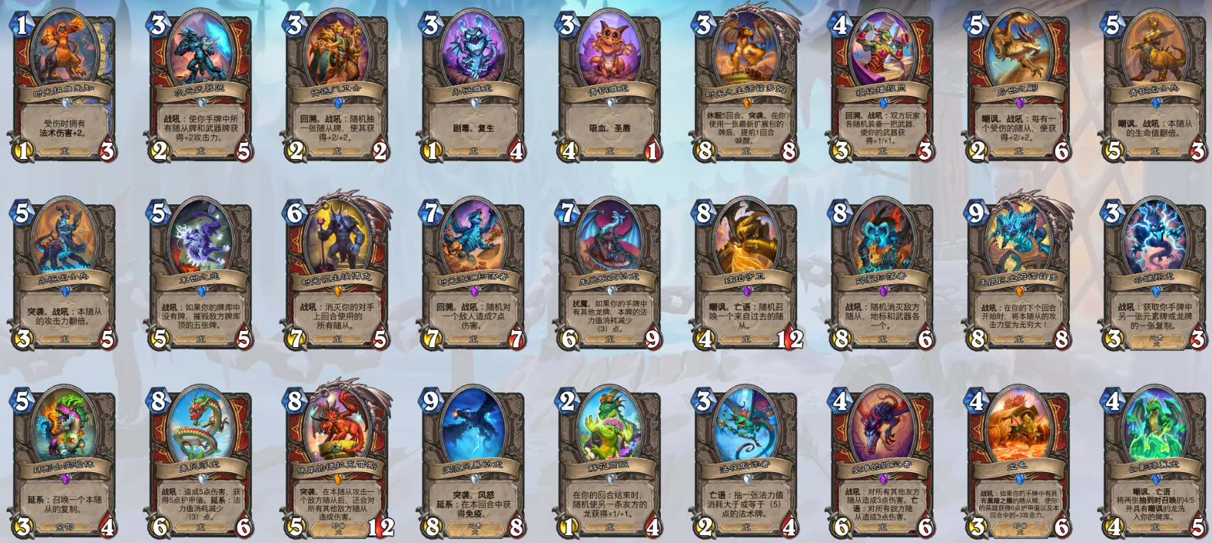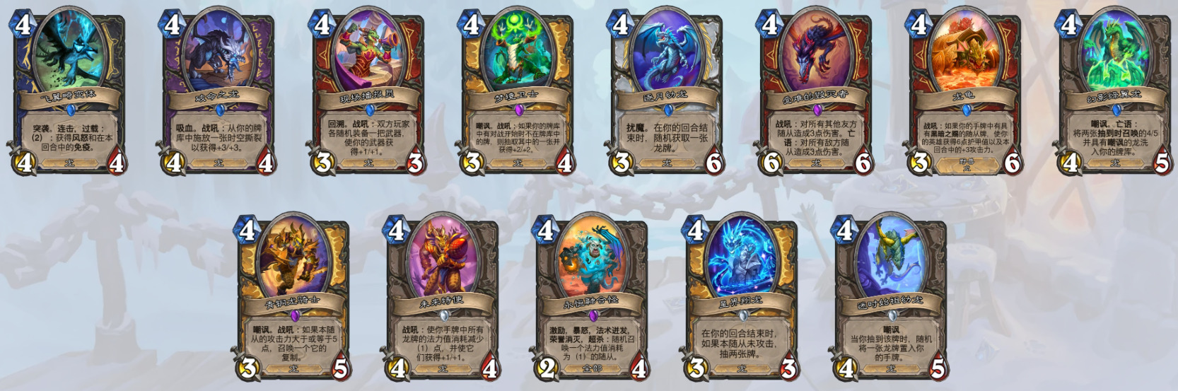 注:①不列举过于庞大的衍生卡池,例如“来自过去的随从”“1费法术”。