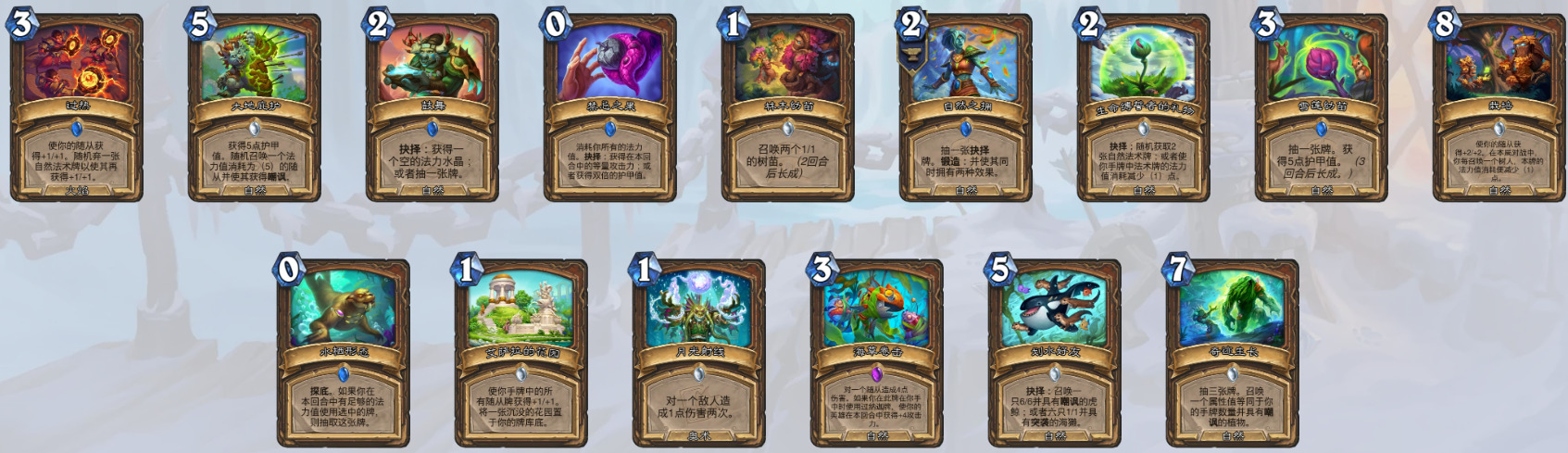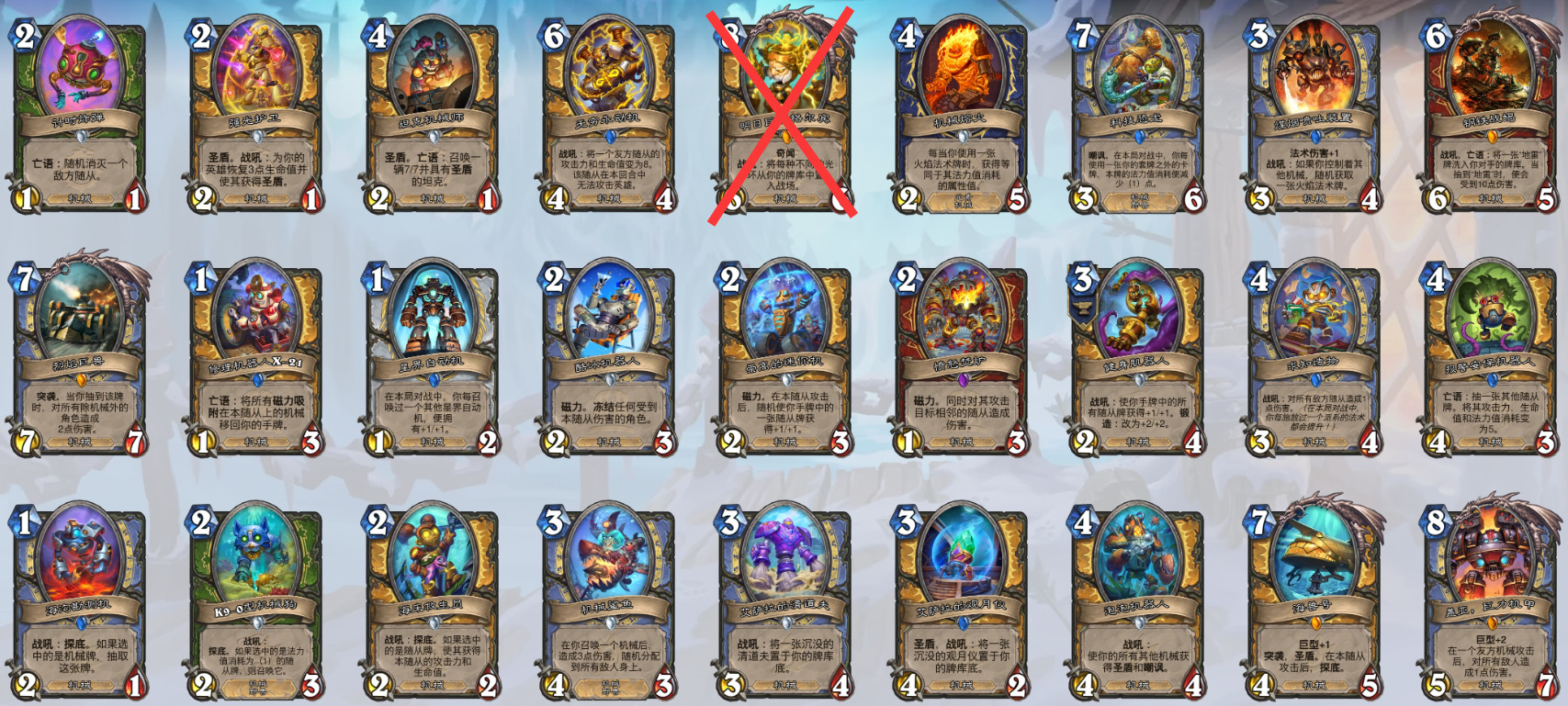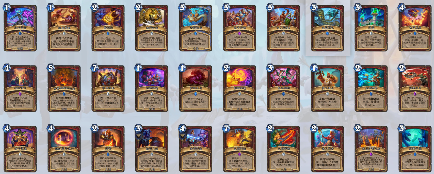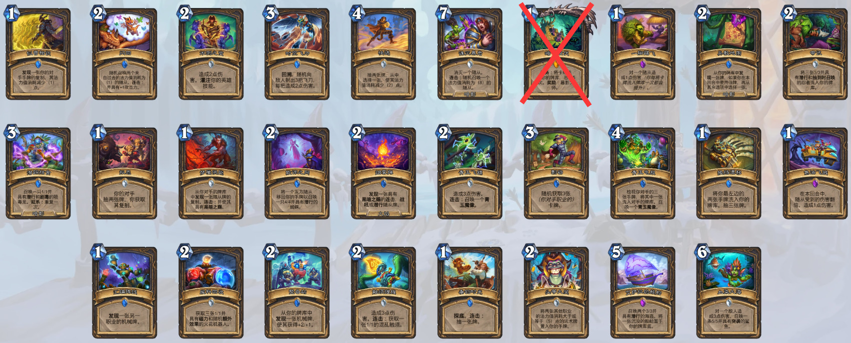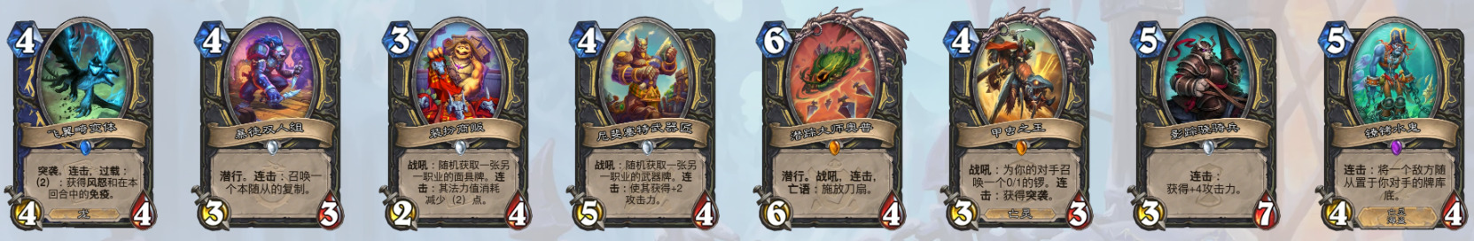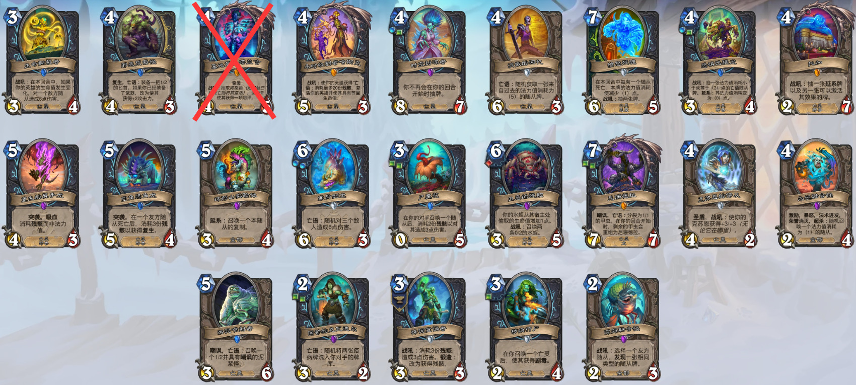 注:①不列举过于庞大的衍生卡池,例如“来自过去的随从”“1费法术”。