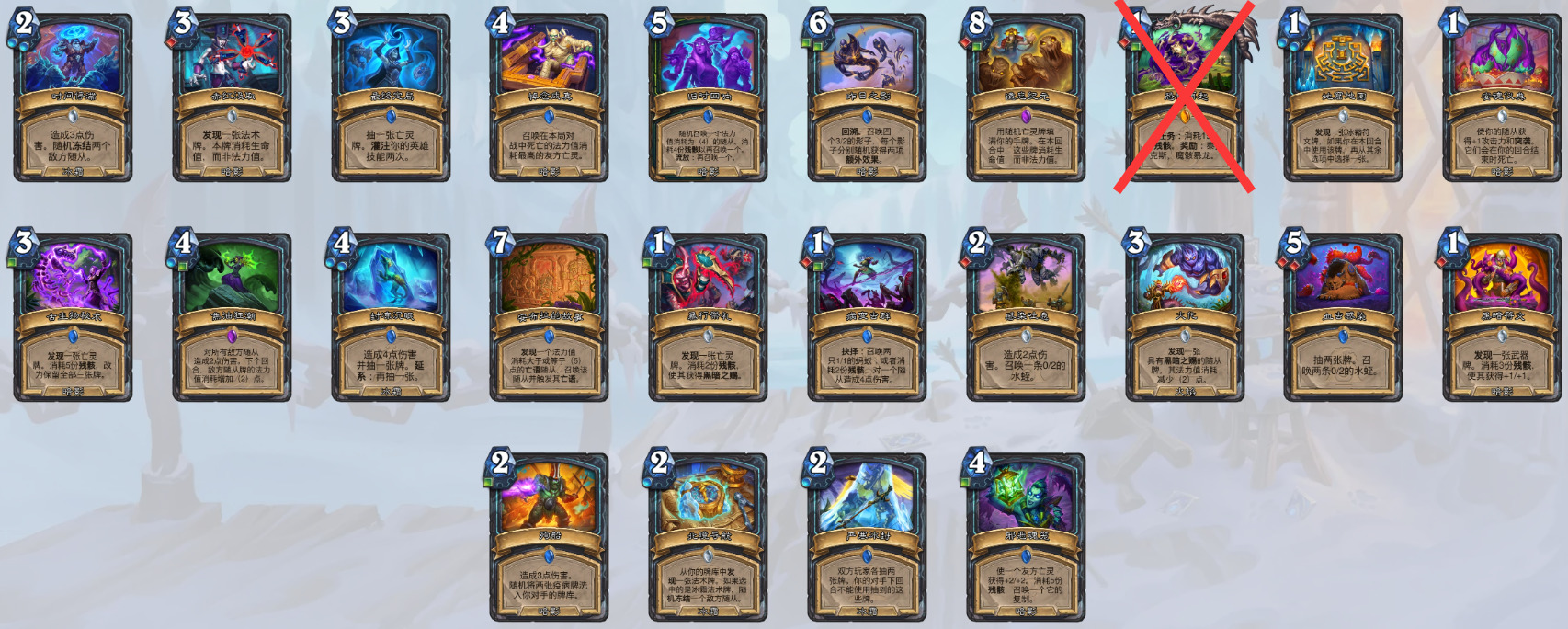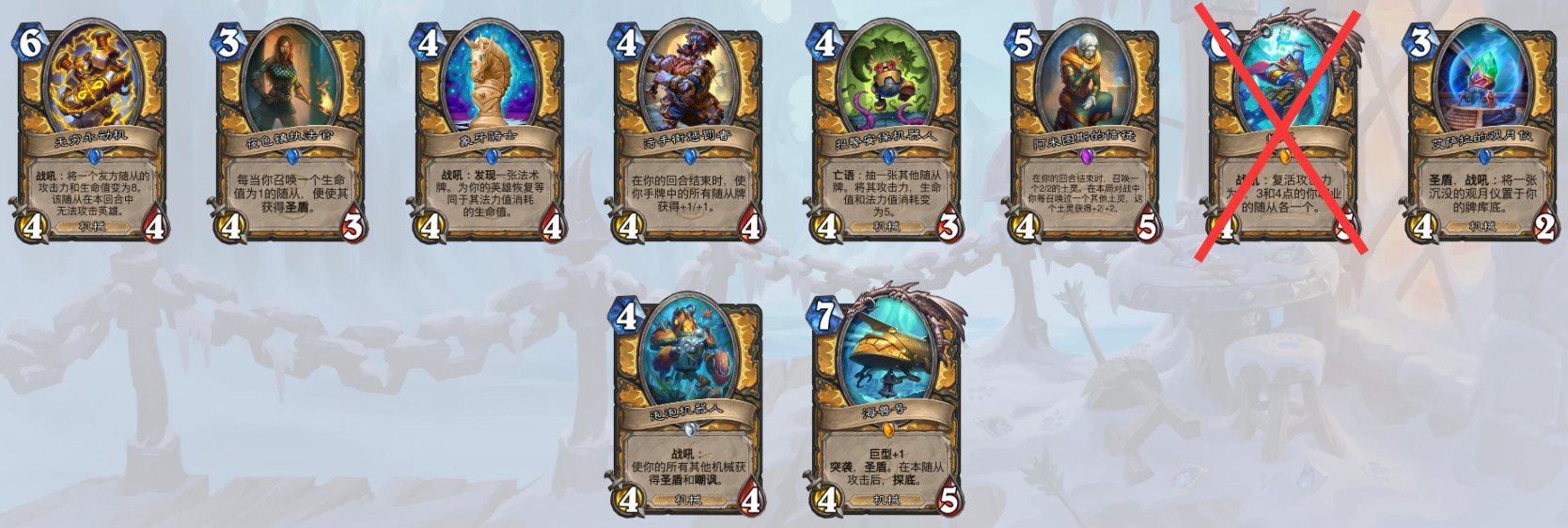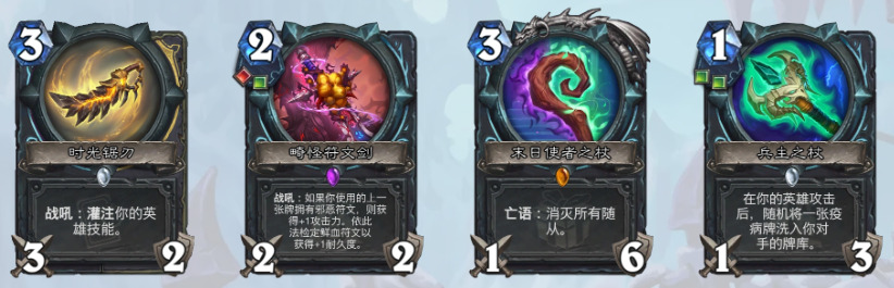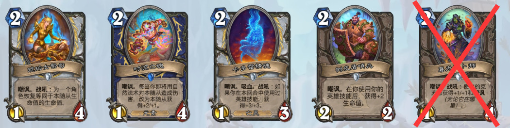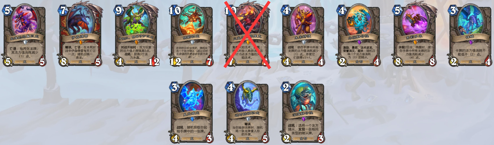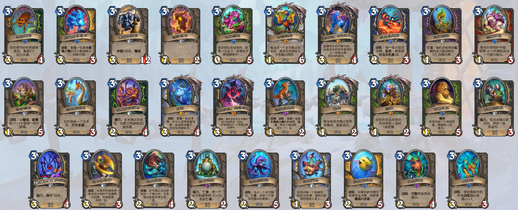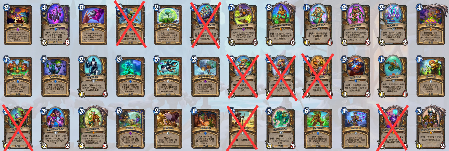 注:①不列举过于庞大的衍生卡池,例如“来自过去的随从”“1费法术”。