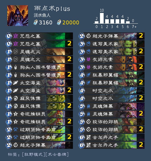 太离谱了,蓝白卡组,23/3,90左右胜率,输的三个大哥萨。刀是扔高费的,就地标换手了,121海盗神之一手三费提刀四费斩。现在主要是看手带一还是二,有时候美术家两抽手就爆牌了,可能一个手一个燃料比较好。
