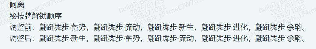 阿离秘技牌解锁顺序改为先解锁转移后获得10%生命值,战力会得到提升,但之前优先解锁蓄势的成长等级,会让后续解锁更为顺利,现在成长等级需等到击杀12个敌方单位才能解锁,是一定程度的削弱