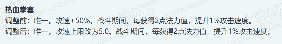 对于攻速核上限提高,是后期可选的装备,前期强度大幅削弱,抓位较低。