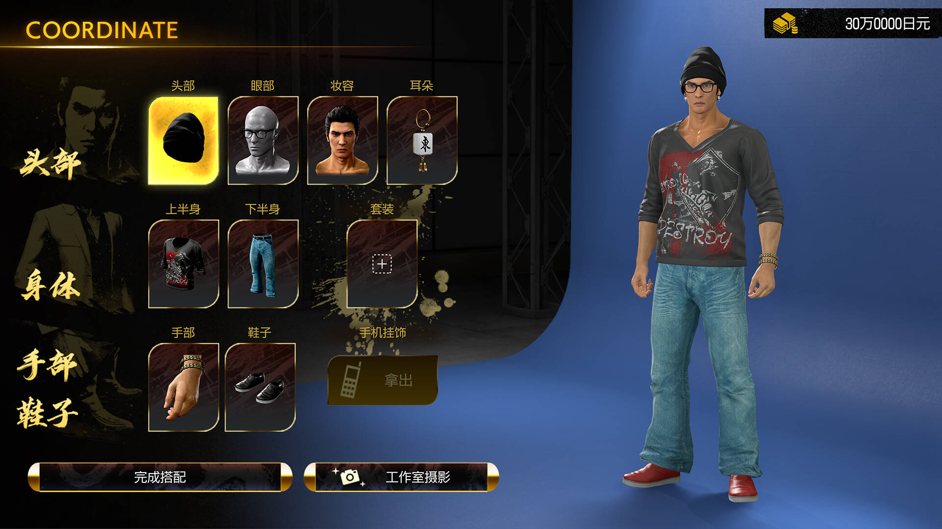 在本作中,玩家可用琉球街和神室町两种不同的风格为角色搭配服装。在琉球街可以穿上凉快的沙滩拖鞋和嘉利吉衬衫,在神室町可以换上蓬松发搭配黑白色系的潮男时装,从丰富的选项中搭配出你最爱的时尚风格!