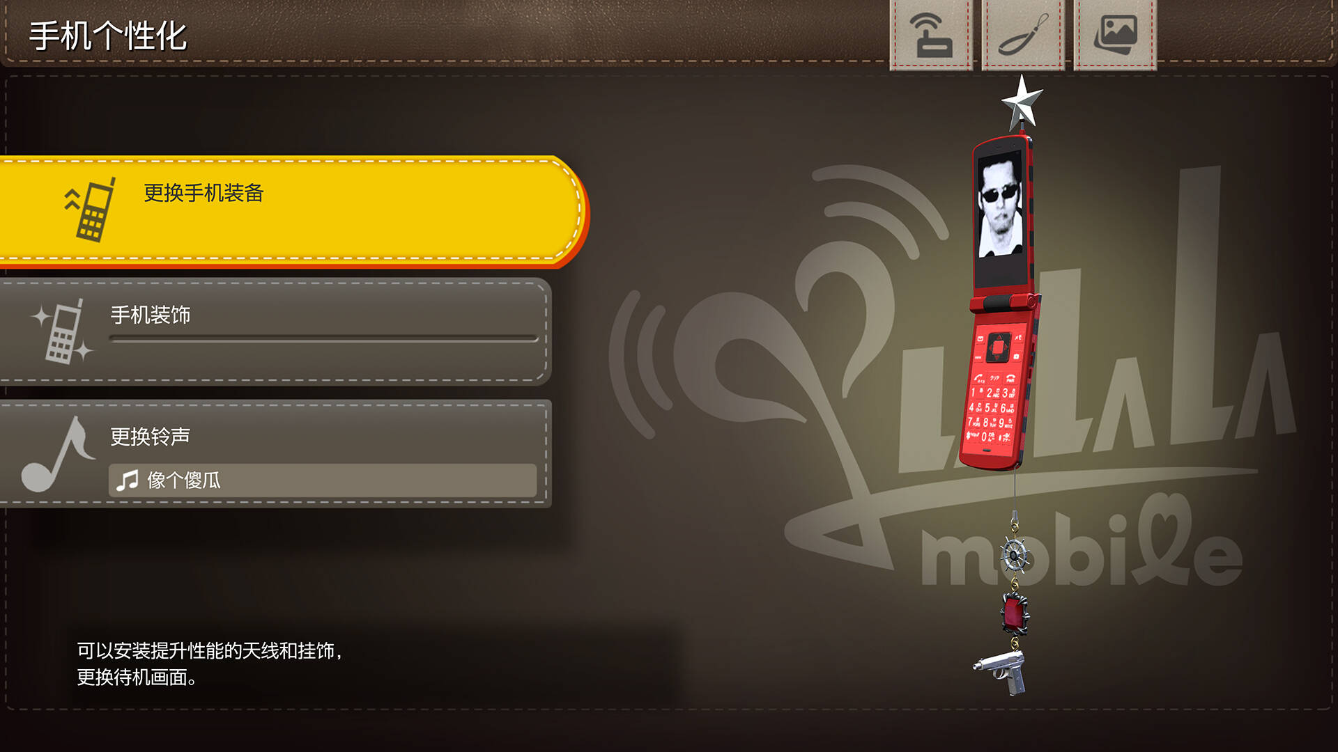 在“手机个性化”功能中可以按照自己的喜好自定义手机,例如替换天线、挂饰和待机画面等,还可以用水钻或贴纸等自由装饰。装备不同的配件还能相应地提升桐生的能力。