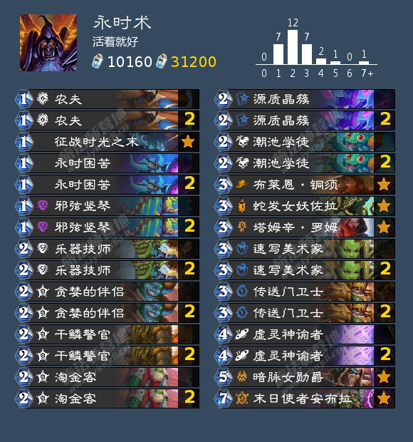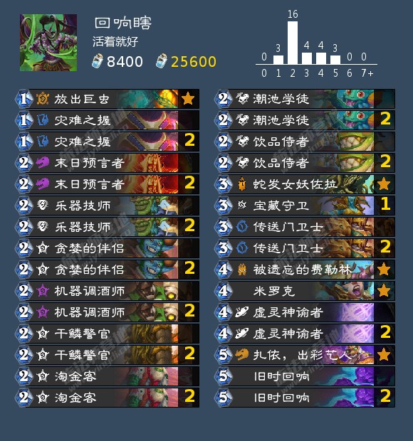 攻略就是起手找双222娜迦,尽可能保住铜须,女勋爵需要腾格子,塔姆辛需要腾手牌。而最大的问题是可能疲劳死,所以带个113免疫也是可以的。