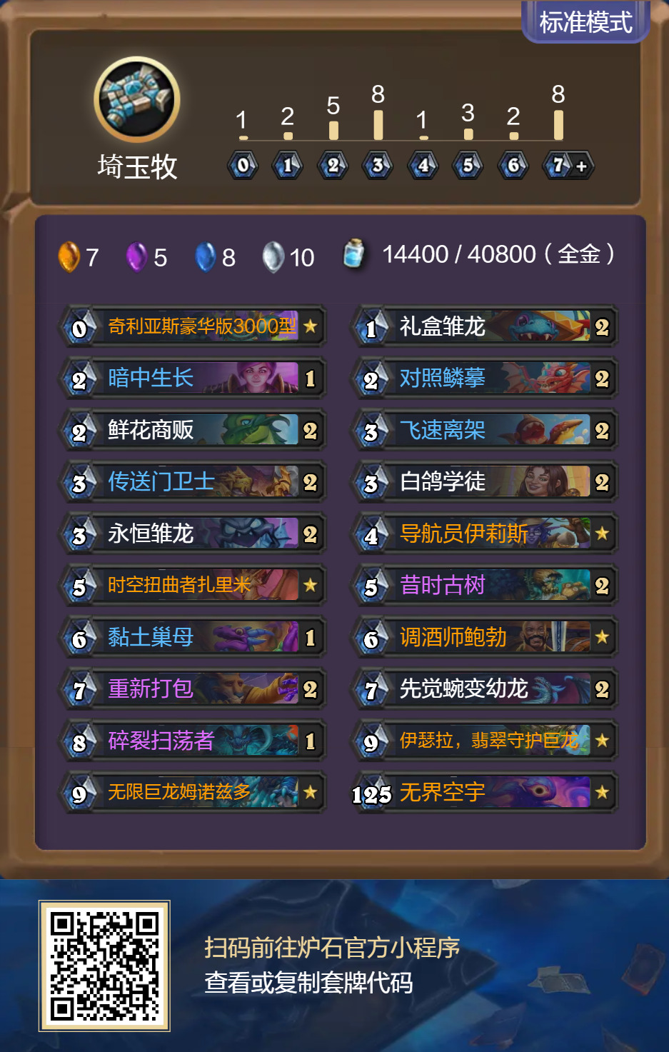 都说炉石是运气游戏,但当你连续5把起手全是大怪、低费牌集体“潜水”、对面神抽如开挂时——你很难不怀疑人生,甚至想和发牌员线下PK;不过别急,这套埼玉牧恰好可以发泄不满,一拳打爆对面狗头,让心情得到些许舒缓。经过30局测试,胜负参半,这套卡组在当前环境颇具潜力,但倘若你想快速上分,并不建议使用这套牌。