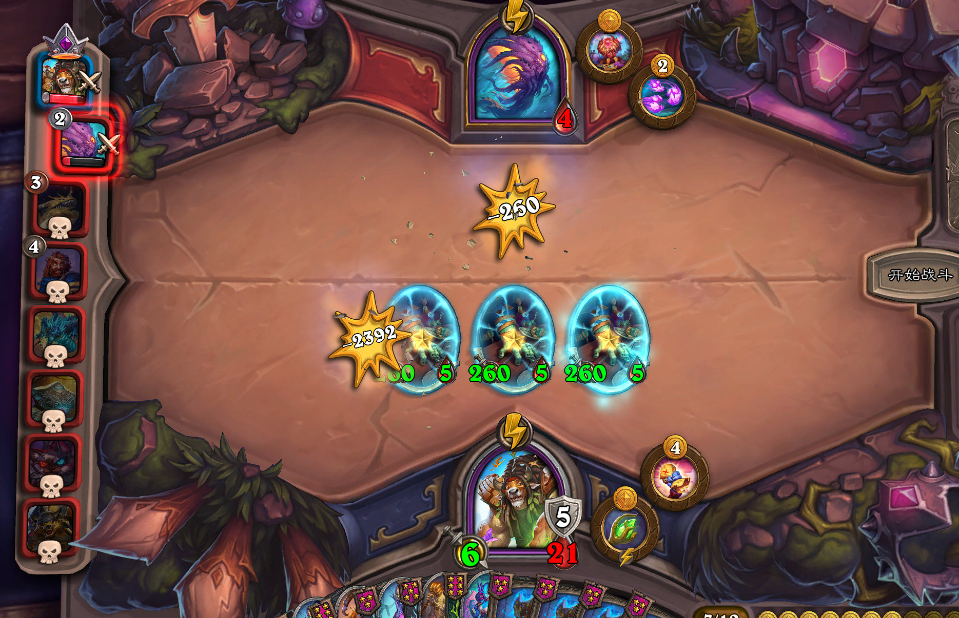 5700分段左右的娱乐局,遇见同样玩亡灵的挂哥第一次斩杀他,打7点伤害,发现他没死,显示伤害0点