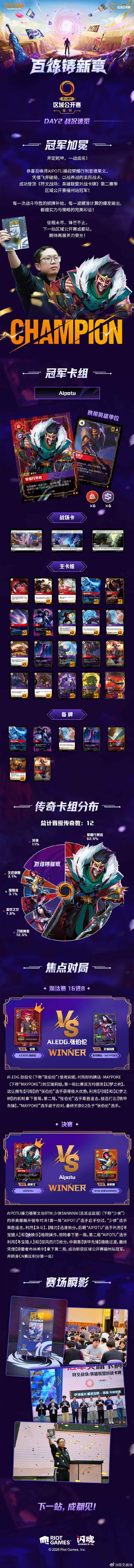 区域公开赛福州站圆满收官!历经激烈角逐,最终冠军荣耀诞生~Aipotu操控荣耀行刑官德莱文一路过关斩将,凭借凌厉战术与精准操作登顶冠军!DAY2 64强卡组多元碰撞,主流套牌与特色构筑同台竞技,尽显TCG策略深度!长图解锁完整内容:冠军德莱文完整卡组,制胜策略公开;焦点对局深度复盘,关键操作分析;赛场高光瞬间集锦,定格荣耀时刻;点击长图深度回顾DAY2,见证斧定乾坤的热血瞬间!