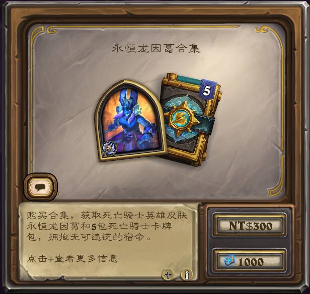 含构筑模式死骑新皮肤“永恒龙因葛”和5死骑包,售价600奥术宝珠(国服)/1000符文石(外服)。