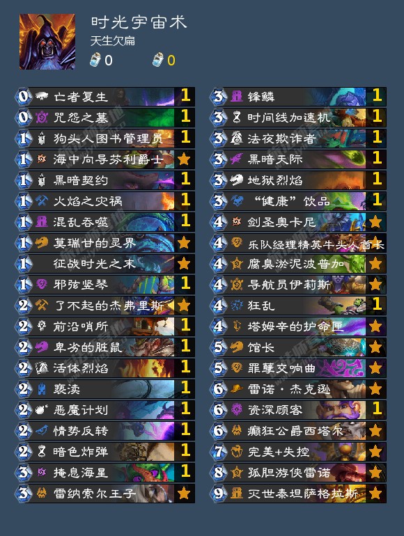更低的费用曲线:抗快能力更上一层楼,前期也更润滑。像121抽牌这种万金油、232活体烈焰这种不亏手牌的2费随从,以及322定向抽机械,检索馆长和奇利亚斯。节奏很不错。
