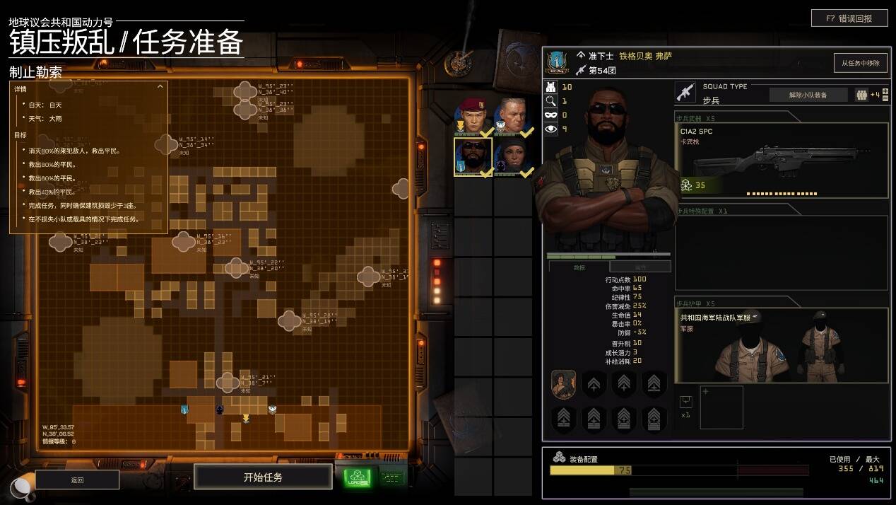 队伍的战斗能力需要依靠装备来进行调整,特别是本作的近未来背景下,武器不仅有射程、命中,还有弹数的设计,需要在不同子模块之间进行补给才能长线作战。