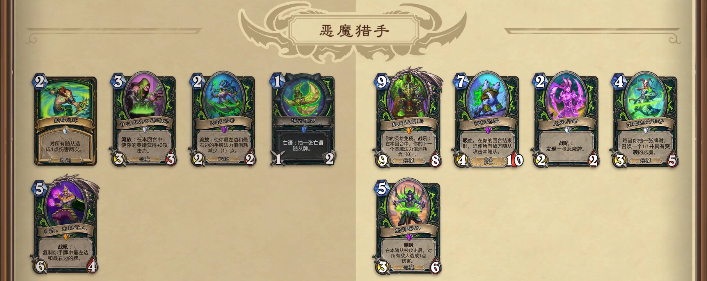 2026甲虫年核心系列的恶魔猎手职业牌更替整理如下。亡语检索减少,总的来说瞎变化不大。