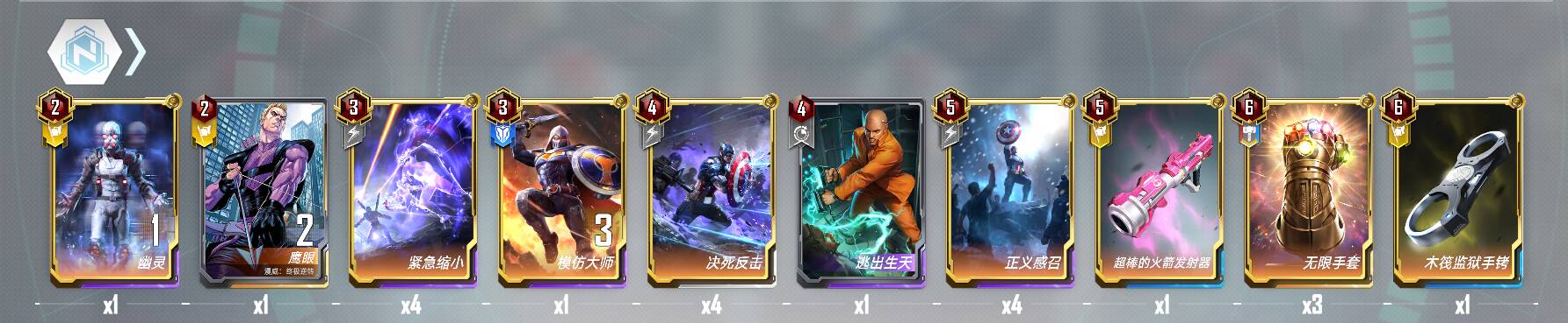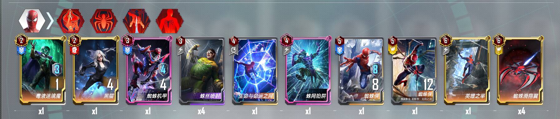 4费:回血拉满。逃出生天可以在蓝蜘蛛或者毒液秘境魔等蓝卡死亡时再触发一次黄卡立即行动,在本卡组中十分好用。