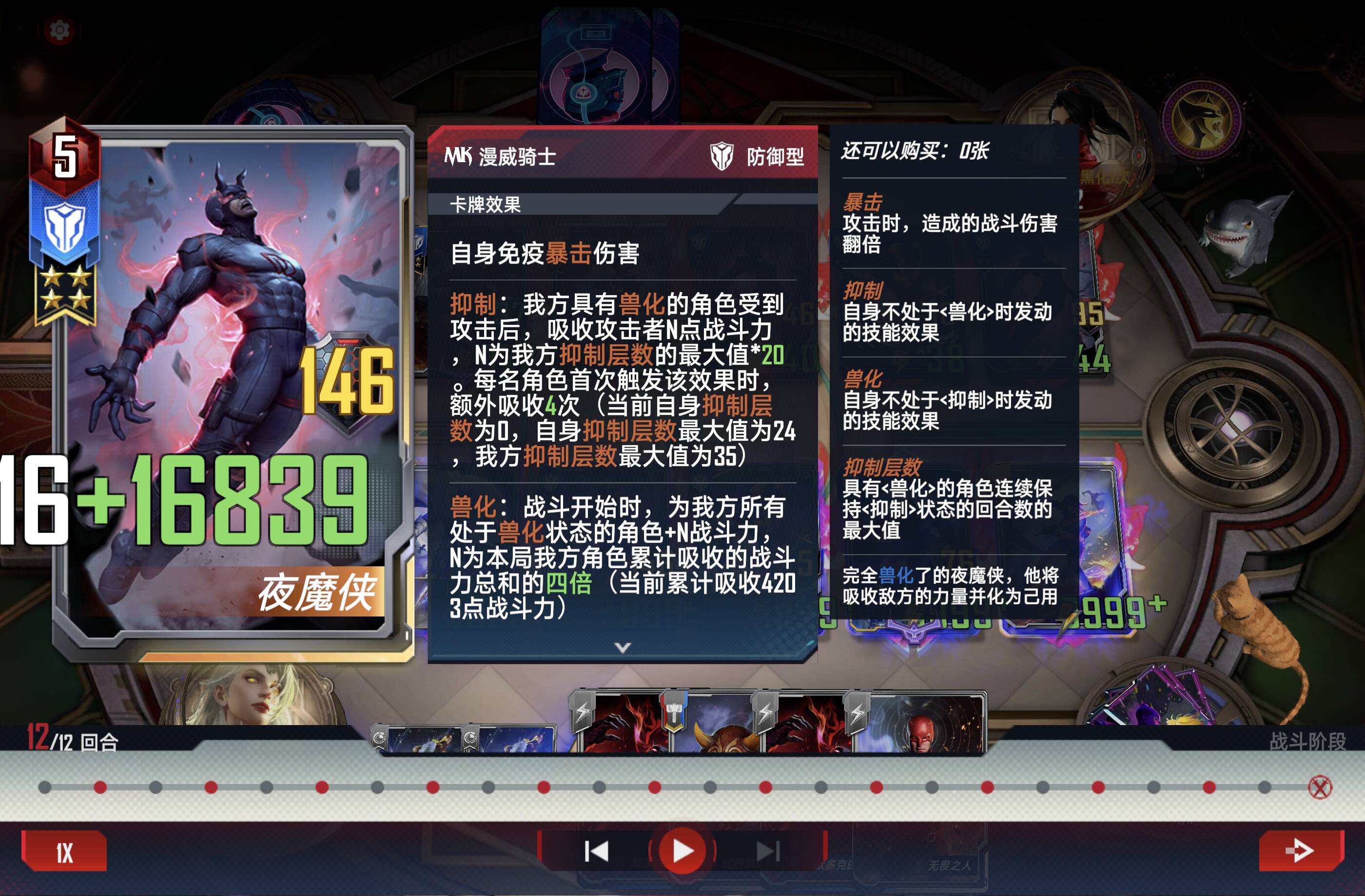 金刚狼(影域),伟大的坚甲BUFF者,有效防止抑制夜魔侠(影域兽形态)的技能触发后吸到攻但是人死了