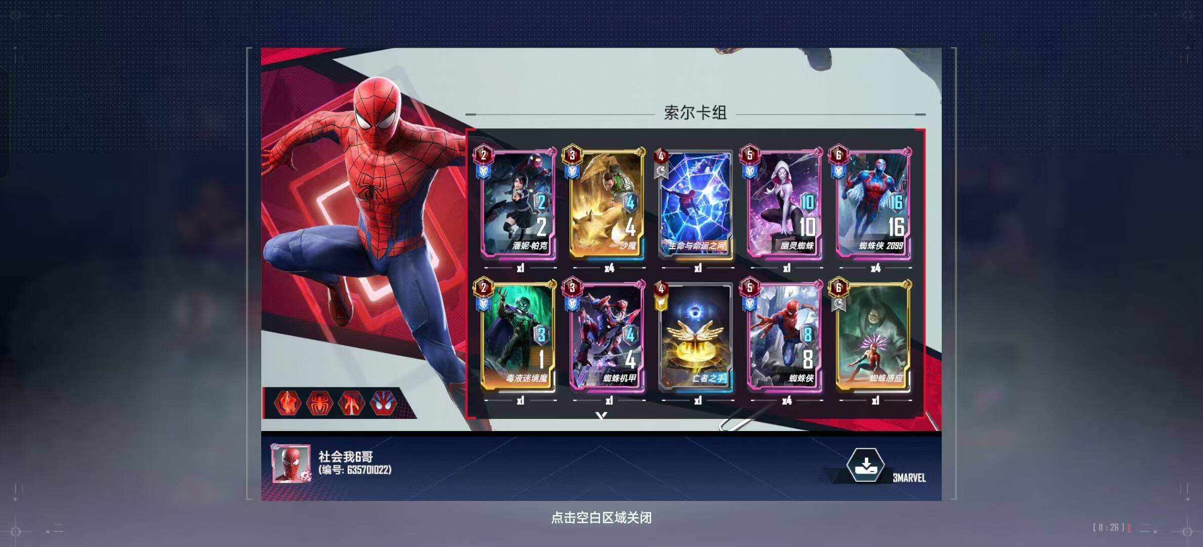 中期:找齐差不多4-5回合升5,开扭曲,找到异界蜘蛛侠基本就锁血了,如果影域夜魔来的早,面具也有,先买来稳血。凑齐链接后就升6,哪怕沙魔只有1张也升。