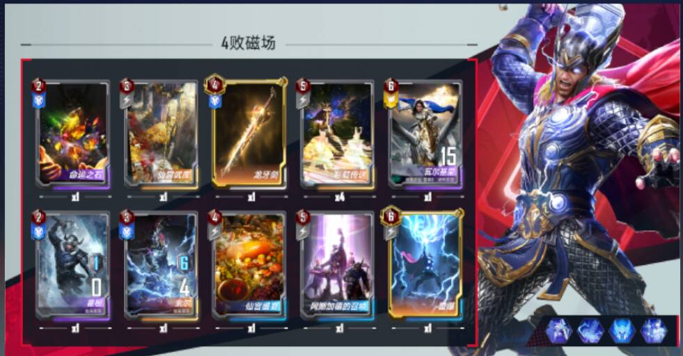 索尔的卡2、3费是经典的命石4件套,4费凑数,5费彩虹传送,另外一个位置凑数,6费凑数。整体带卡都是为了彩虹传送服务,尽量少带随从卡,避免影响到彩虹传送质量。