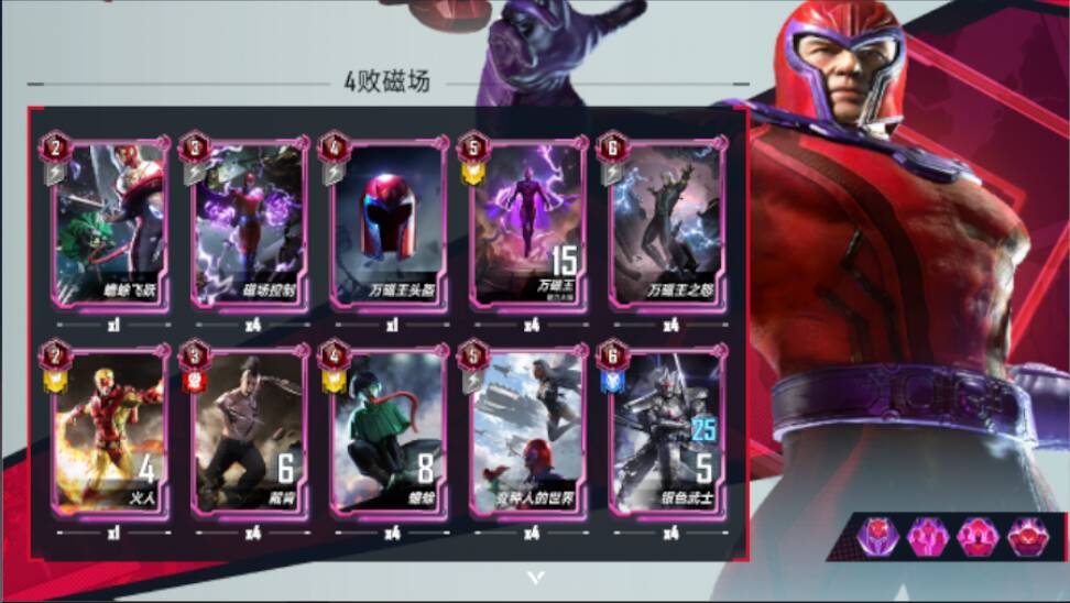 七回合后,重复上述操作,通过托尼链接挣钱,同时找万磁王和磁场战士卡,若经济尚可,可以选择通过变种人的世界抓万磁王之怒,看情况打出;