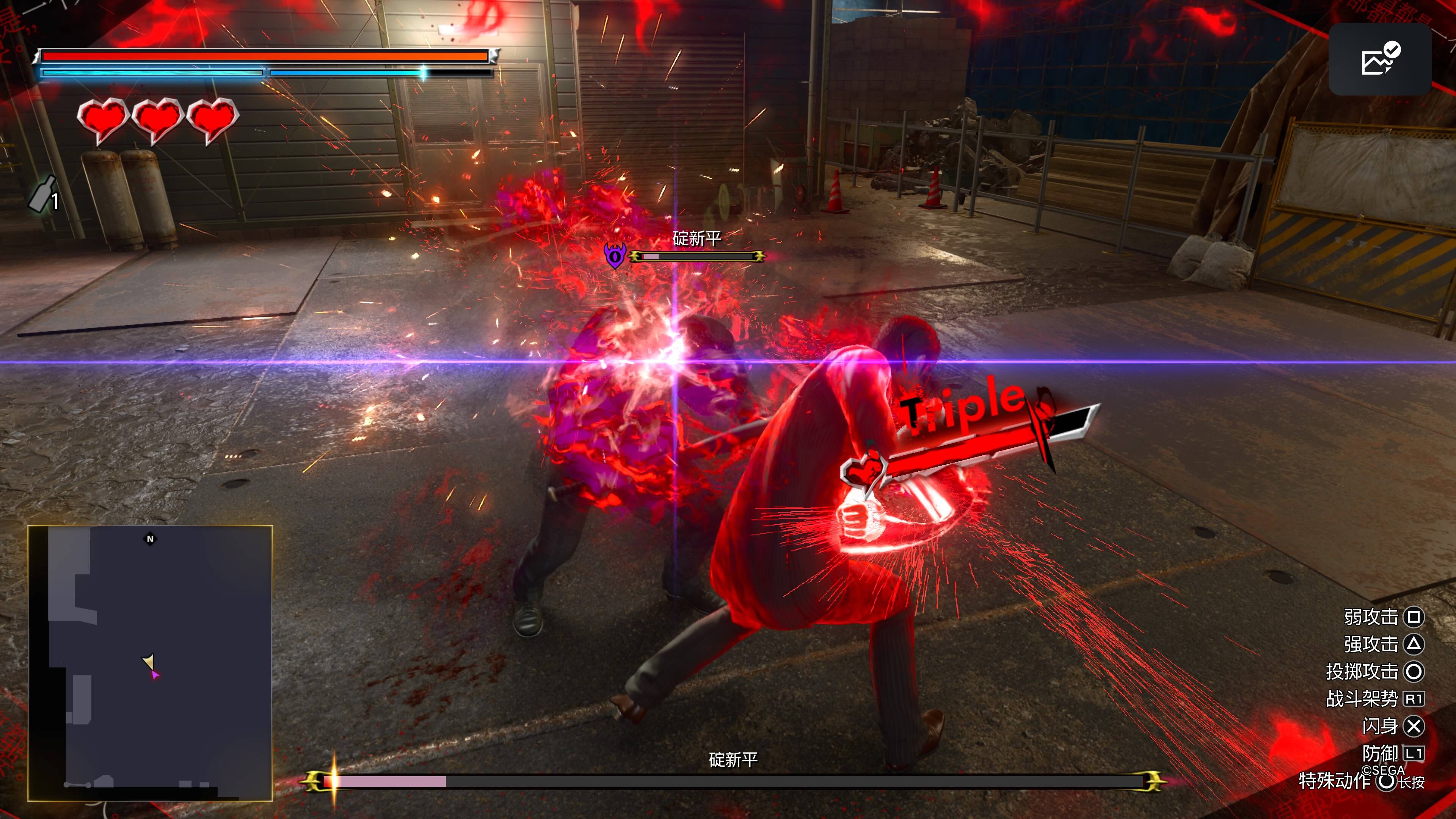 老如龙3有个非常劝退我的地方就是打架的时候敌方的龟壳防御实在让人恼火。对于很多钻研战斗系统的中重度玩家来说有不少施展拳脚的机会,然而对于像我这种0-6全程normal的轻度玩家来说,像打在棉花上一样的攻击反馈非常消磨兴致。然而在极3中,敌人的逻辑发生了变化,而桐生一马也有更多的手段应对敌人的各种状态,在这一点而言,可以说是对轻度玩家的福音了。