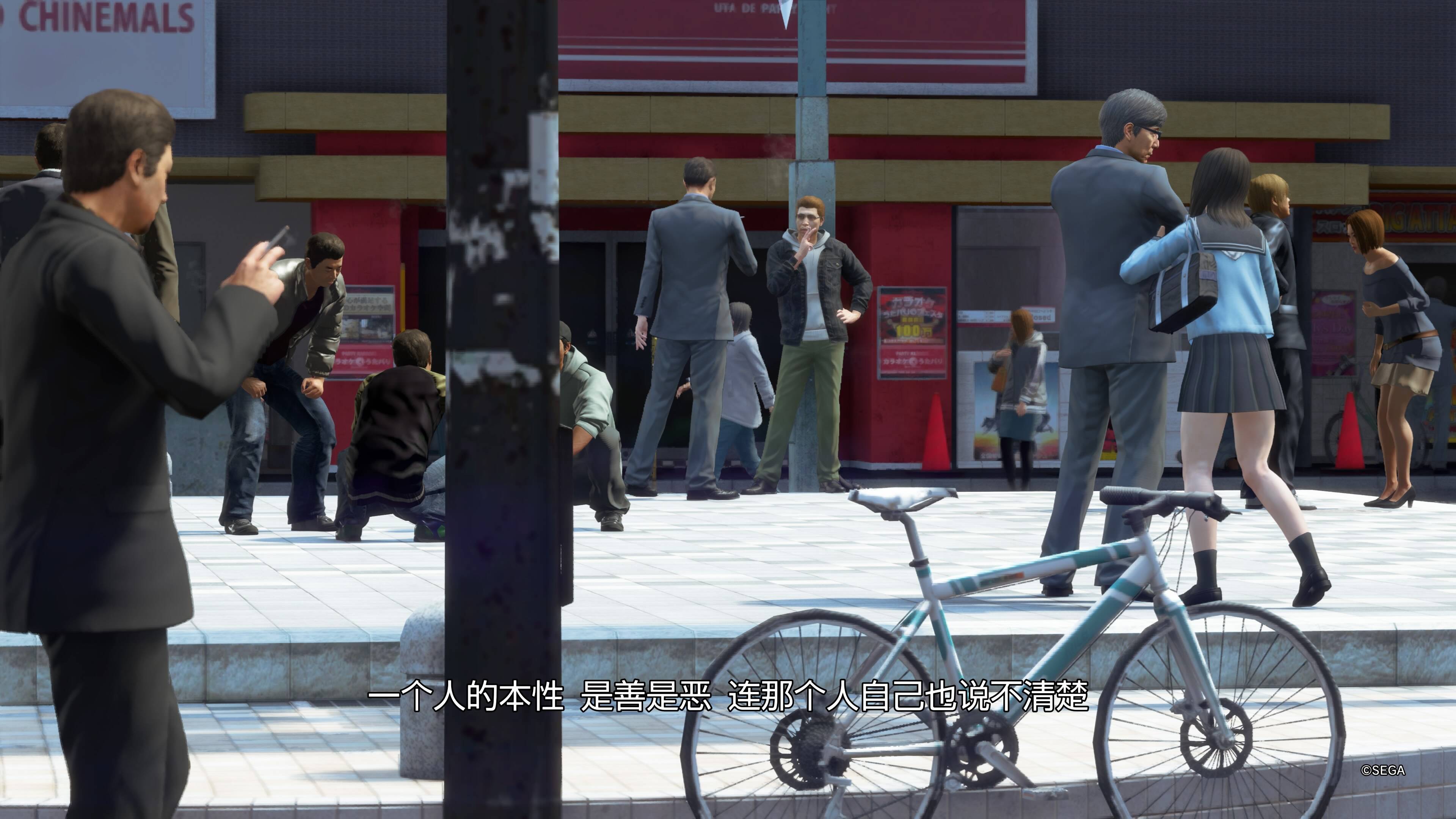 剧情方面,在本作中,桐生一马更多考虑了“家人”。哪怕被指责他的行为更接近于伪善,但桐生一马就是能毫不犹豫的贯彻到底,拼命守护自己想要守护的东西。在神室町有个比较有意思的占卜师支线,占卜师告诉他未来会当出租车司机、抱着个孩子、甚至十五年后会生一场大病,并且神采奕奕地与之抗争。在通关如龙8外传之后再回过头来看这段剧情,多少会对这种“先验”的事有所感慨。未来的事可以被简单截取吗?这其中的努力究竟会被怎样概括?身处于漩涡中的人又在怎样挣扎?这一切都只能用时间镌刻答案,唯有热血长存,不曾更改。