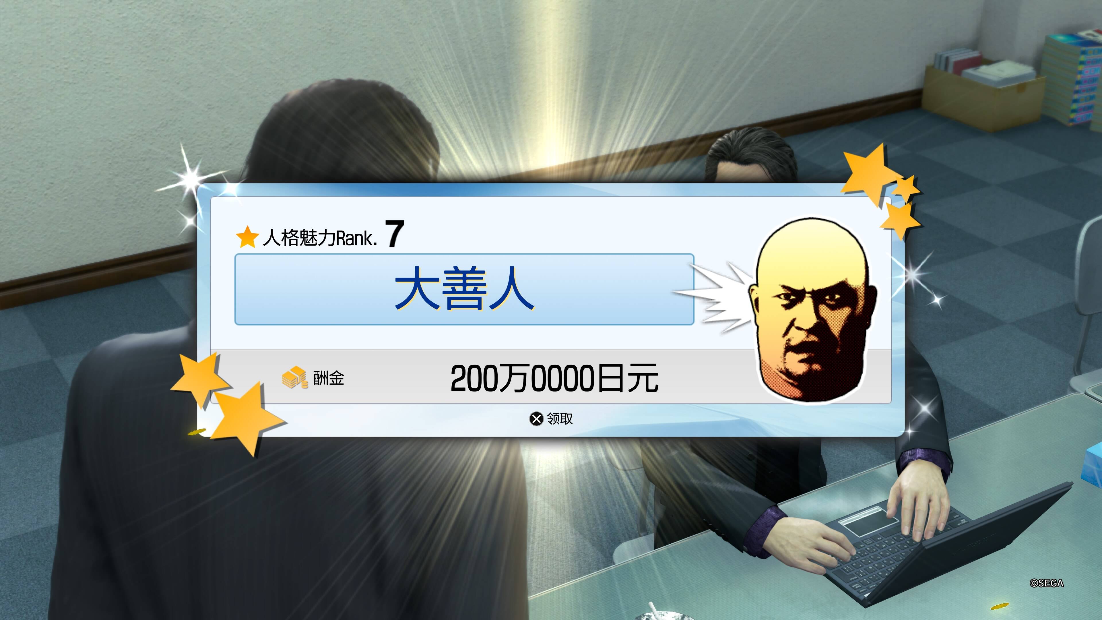 对照于本篇的成就目录琉球风格训练册,外传中则是神田社会形象重塑。在达到7级时屏幕弹出来一个“大善人”,配合神田那张油腻的大脸是真有点让我哭笑不得