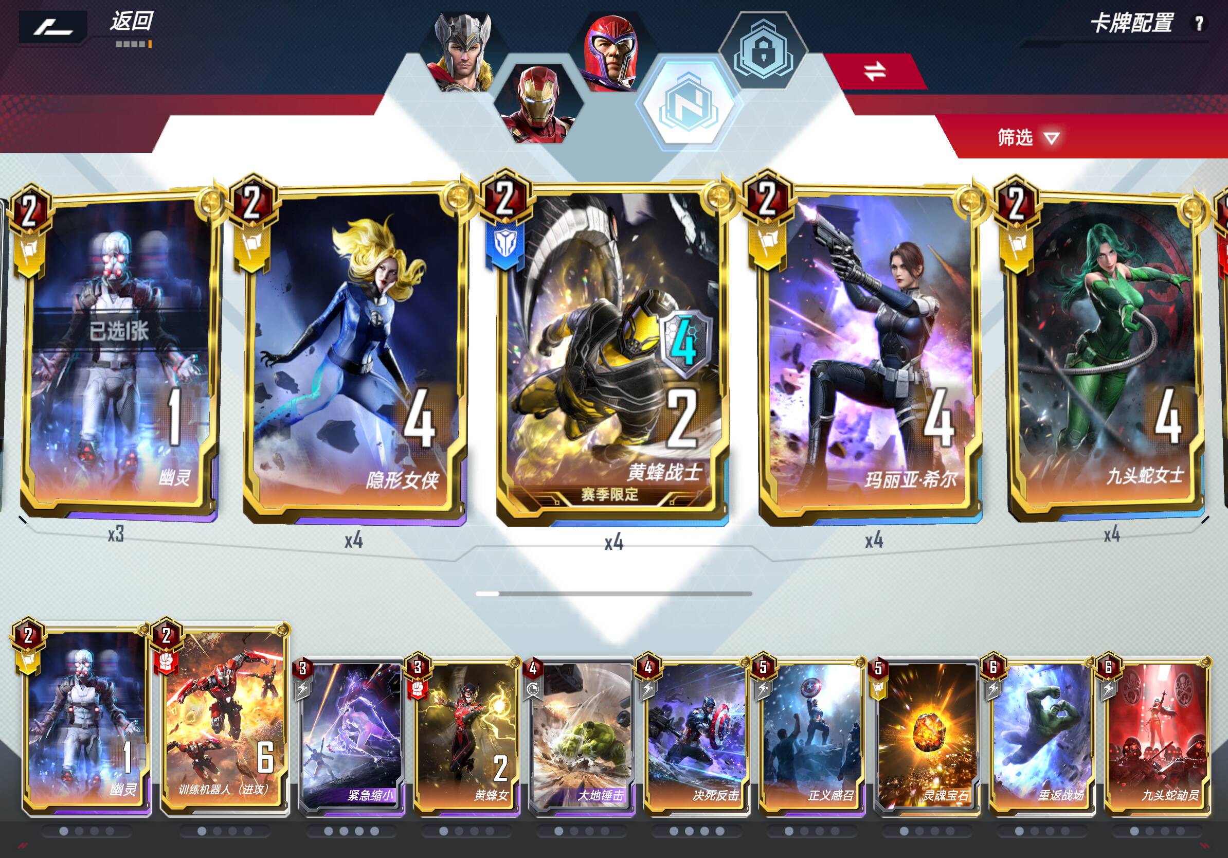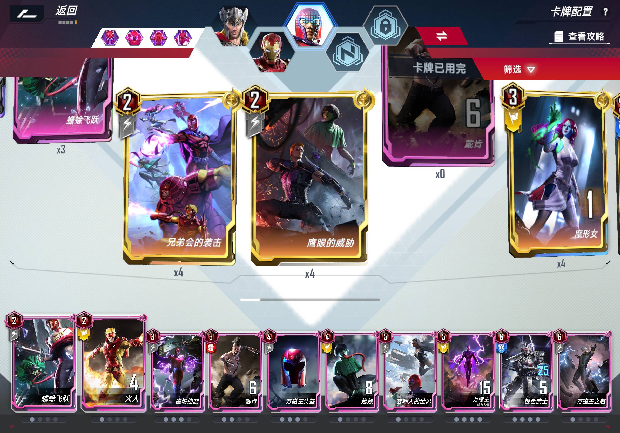 5费:万磁王最好带满,有几张万磁王关系到卡组强度;变种人的世界带1到2张即可,带4张可以卡五本刷银武,也很好;