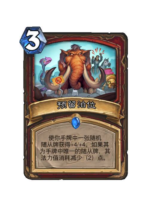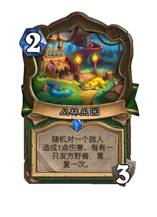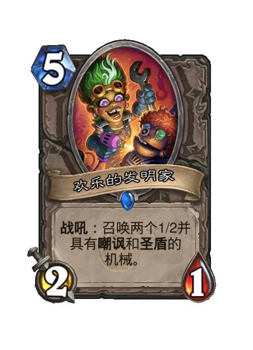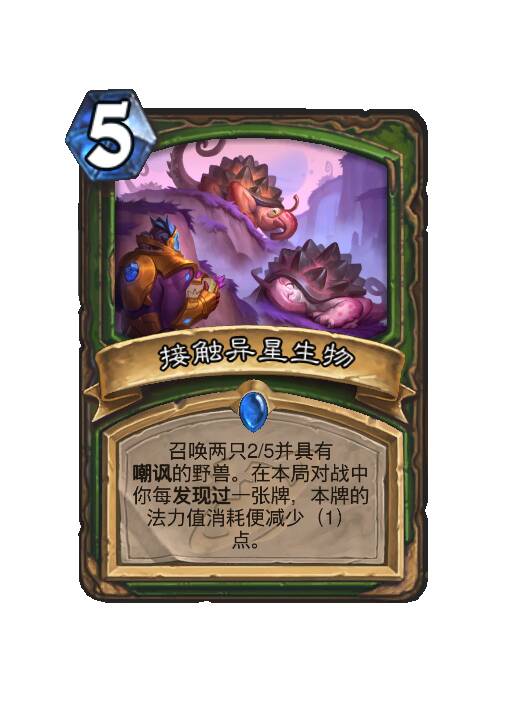 - 新:召唤两只2/5并具有嘲讽的野兽。 在本局对战中你每发现过一张牌,本牌的法力值消耗便 减少(1)点。