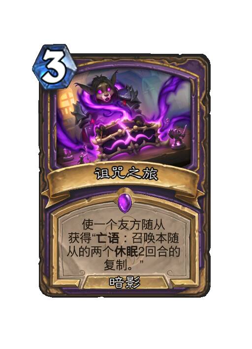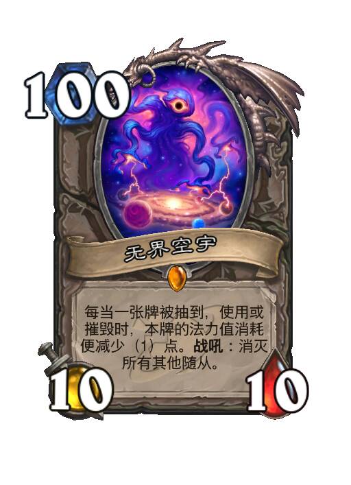 - 旧:召唤两只2/4并具有嘲讽的野兽。 在本局对战中你每发现过一张牌,本牌的法力值消耗便 减少(1)点。