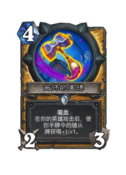 - 旧:在你的英雄攻击后,使你手牌中的随从牌获得+1/+1。