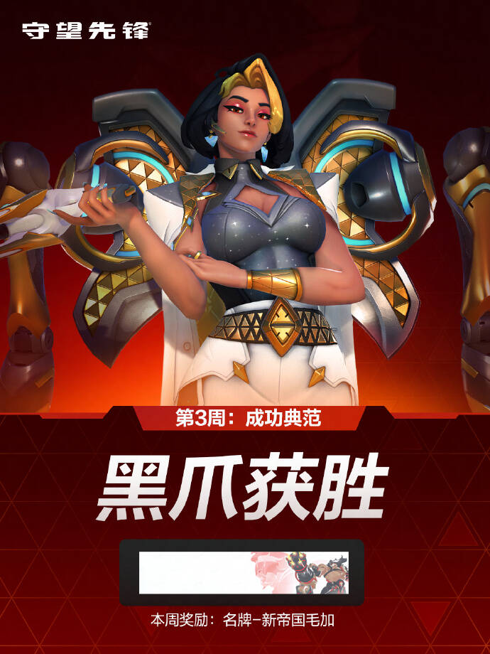 活动第三周已结束,黑爪获得胜利。在活动第三周期间加入阵营战斗,上线即可领取奖励名牌-新帝国毛加第四周活动篇章【破咒之镰】已开放,即刻选择加入守望先锋或黑爪,参与本周特别挑战,领取你的奖励吧。