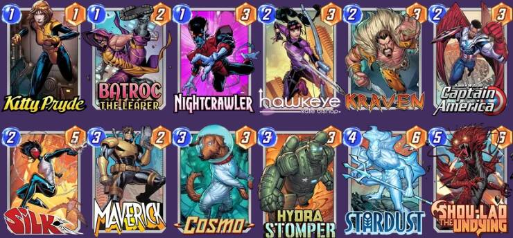 卡组核心:【跳跃者巴托克】【二代美队】【青少女弹头】【超巨星】