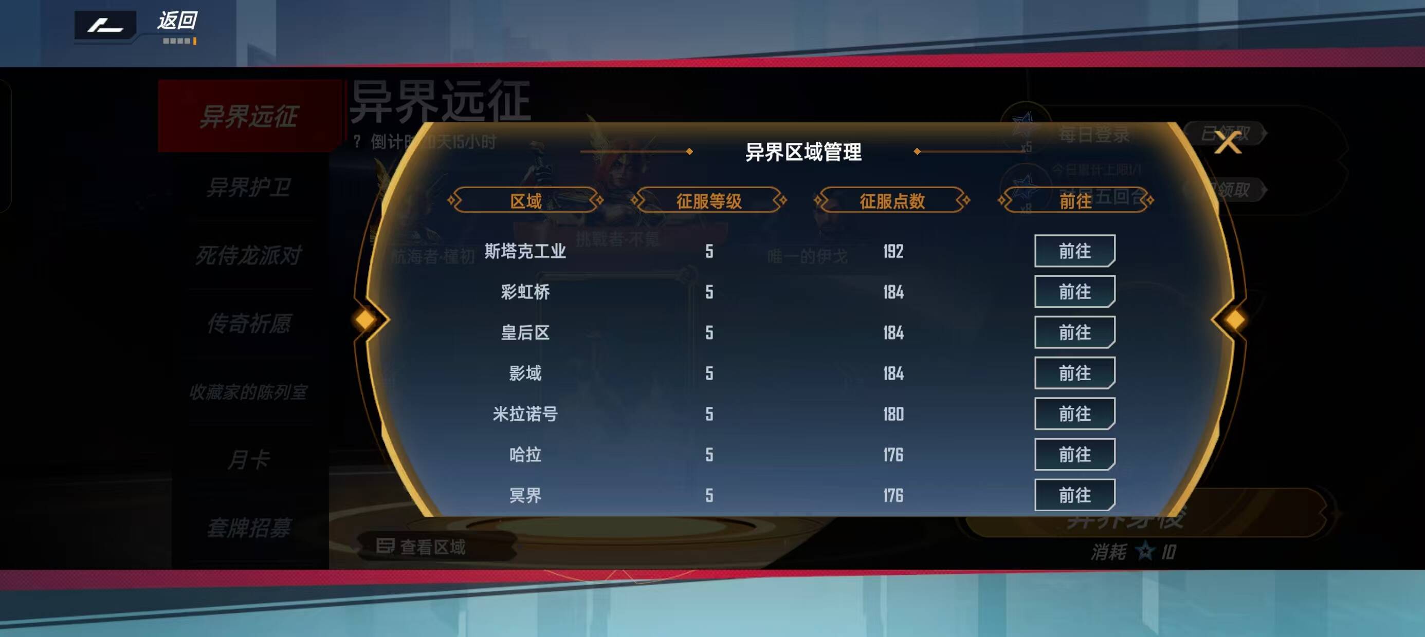 有一个自选锁定卡组自选,因为未料到新活动,账号里唯一的648也用了。导致新活动征服领域没涨,全靠本身卡组收集基本达到五级征服等级(全异界都可玩)