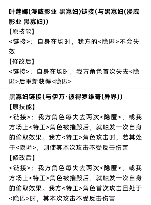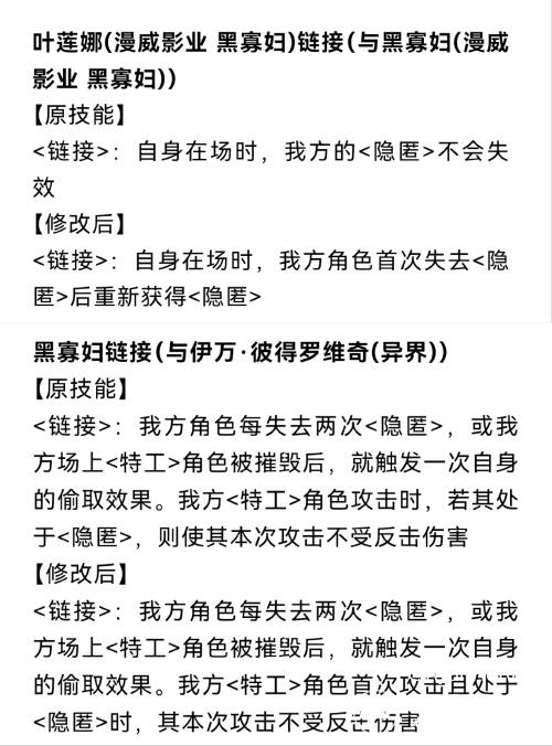 然后上赛季虽然只是刀了白寡和复联寡链接的隐匿长驻,但是这次还是刀到黄寡链接上 ,又刀了隐匿免伤