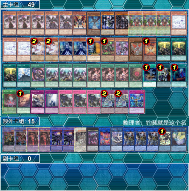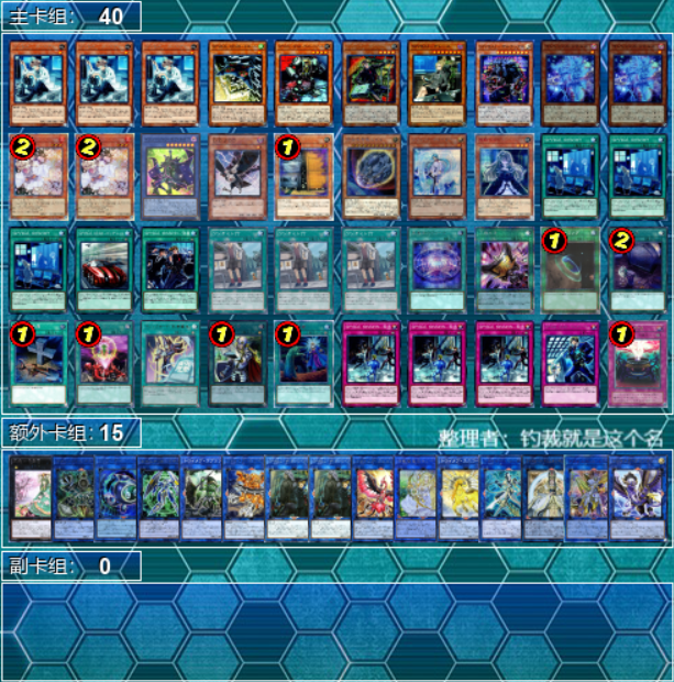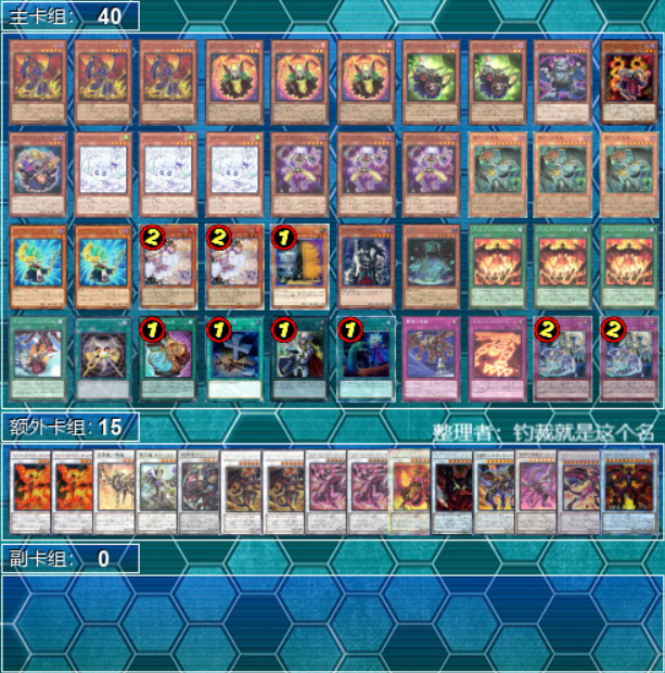 卡组分布:霸王魔术师、发条森之圣兽、古代机械齿轮、刚鬼、灰灭、黑魔导秘旋谍、梅尔菲、兽带斗士玉米、涂yā兽、未界域魔轰神、伟魔、战华、征龙、咒仪