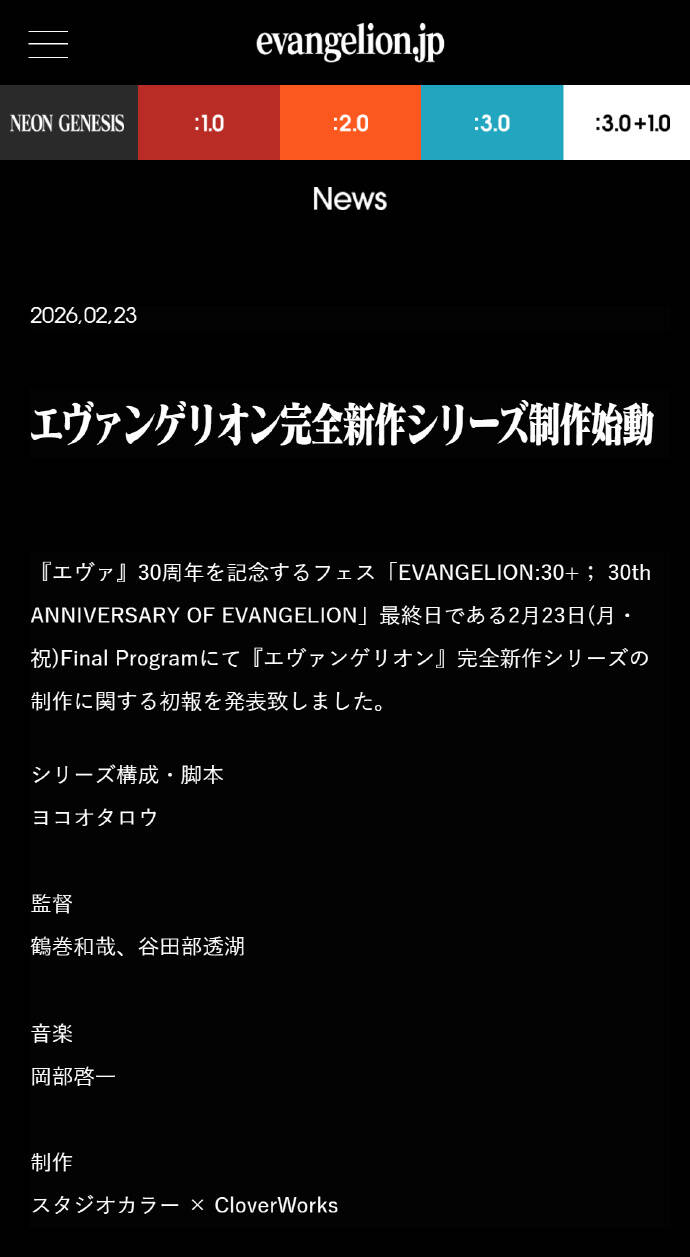 《新世纪福音战士》完全新作系列制作决定