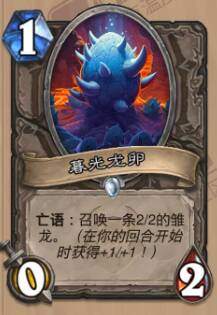而在狂野里,对单卡效力要求高的卡组里,打出112就得给点能抢节奏的牌,而不是单纯的给可能用不出去的牌。如果想进狂野的话,那应该得多一个“并使其-1费”,这样就算是白板也算是节奏。现在猎人玩不起龙猎的理由一是因为龙难拿节奏,把把来石爪打击者、先觉蜿变幼龙这俩数值怪的概率不会太高,到最后只会转向中速龙猎,到最后发现实在是尴尬,继续让龙体系吃灰;二是中后期龙的质量不够,这个在这个版本尽可能去弥补,但还是需要更多的数值 。