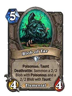 - 新:[5费4/4] 剧毒。嘲讽。亡语:召唤一个2/2并具有剧毒的黏团,以及一个2/2并具有嘲讽的黏团。